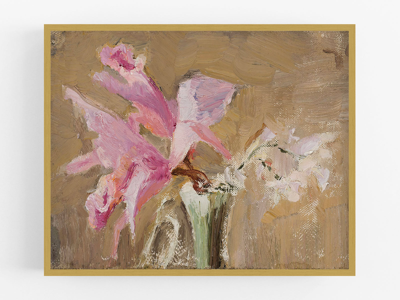 Abstract pink orchid, vintage reproduction art print, c. 1906.