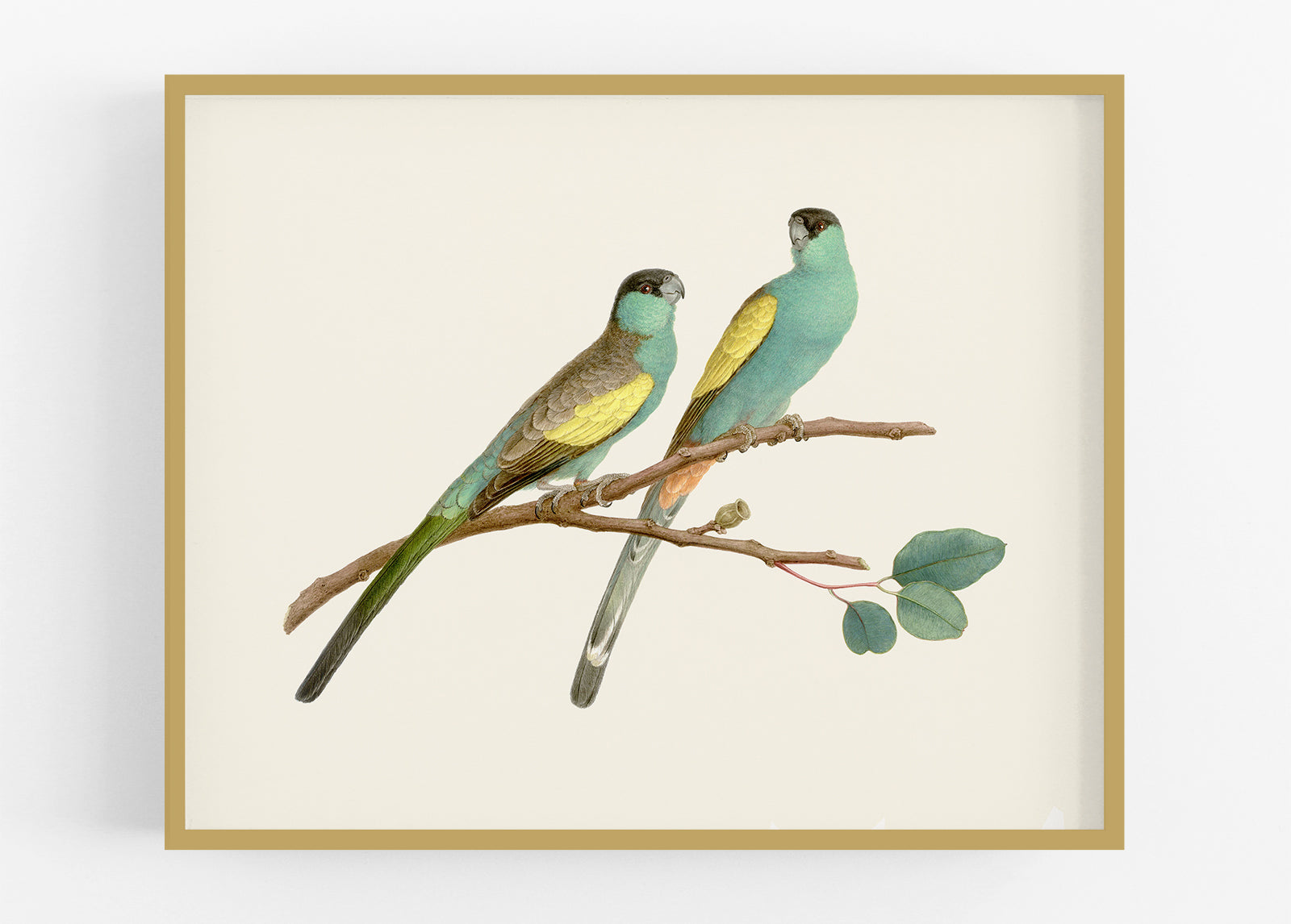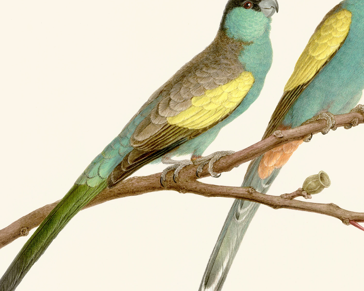 Australian Hooded Rosella Parrot, vintage reproduction art print, c. late 1700s to early 1800s..
