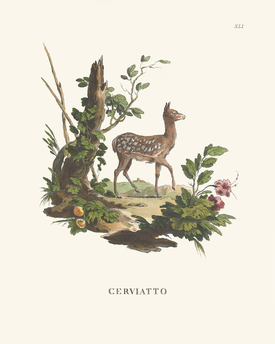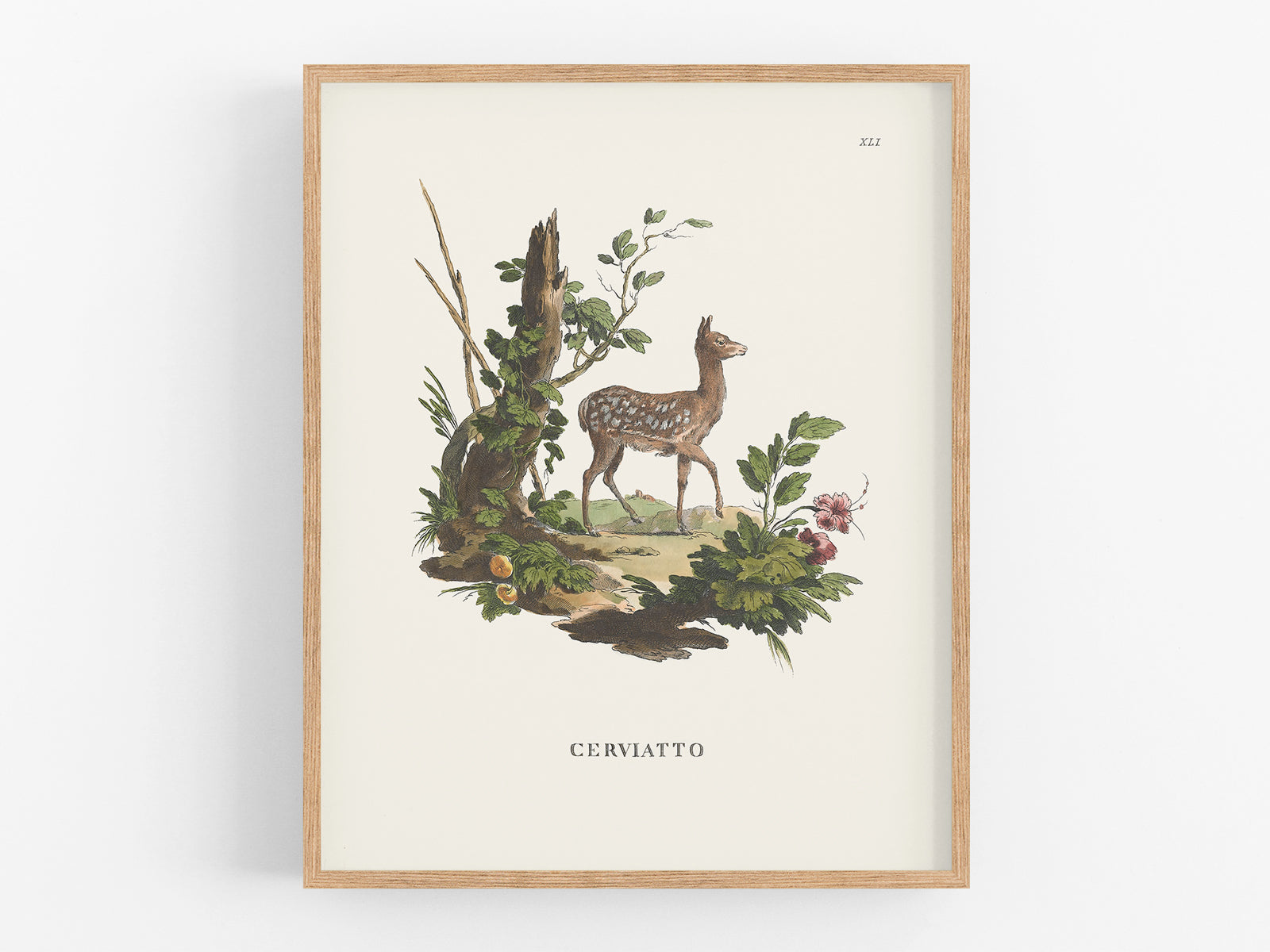 Vintage reproduction baby deer art print: Cerviatto, c. 1741-1803.