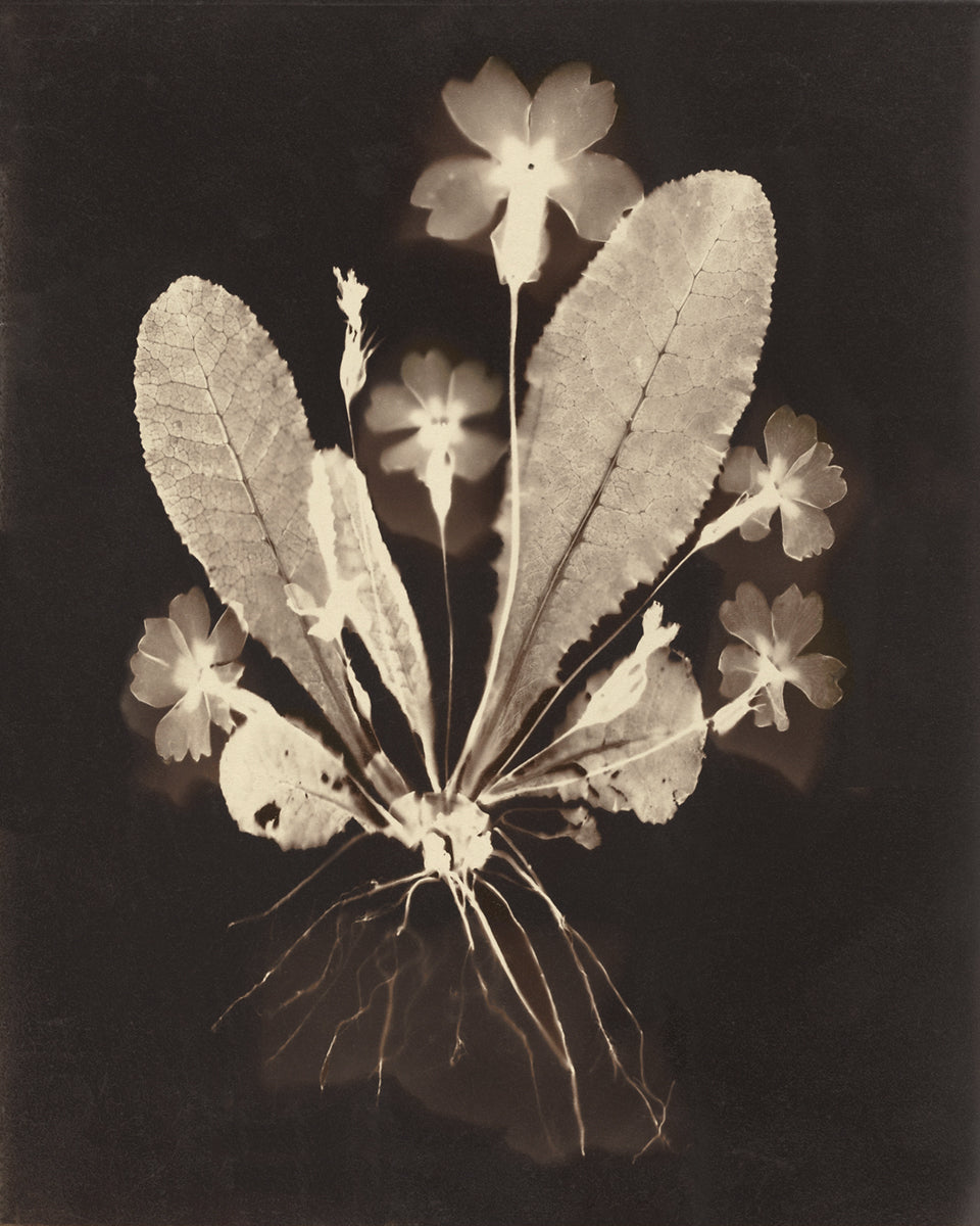 Among the earliest photographs known, these are traces of a botanical specimens. The plants were placed directly on top of a sheet of photosensitized paper, blocking the rays of the sun from darkening those portions it covered and leaving a light impression of its form.