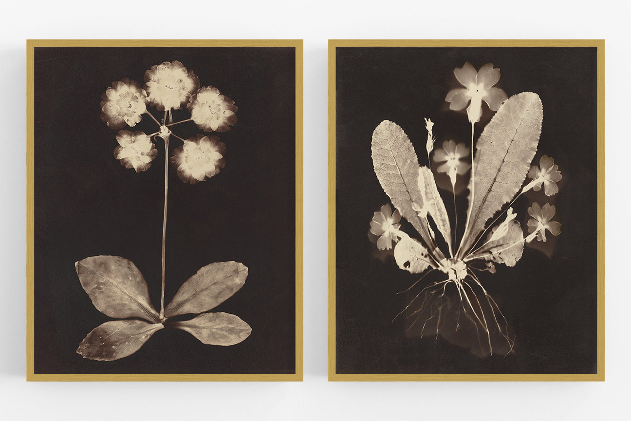 Vintage flower botanical photogram art prints - set of two (2), c. 19th century.