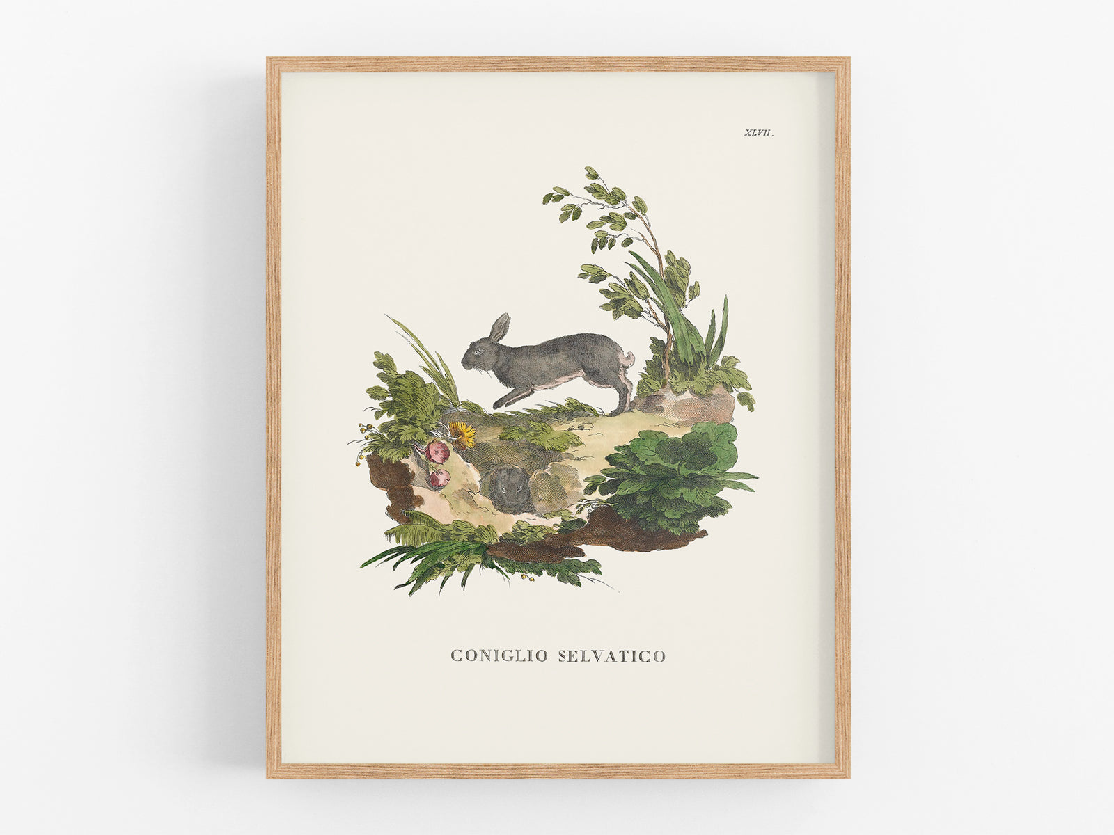 Vintage reproduction bunny art print: Conglio Selvatico, c. 1741-1803.
