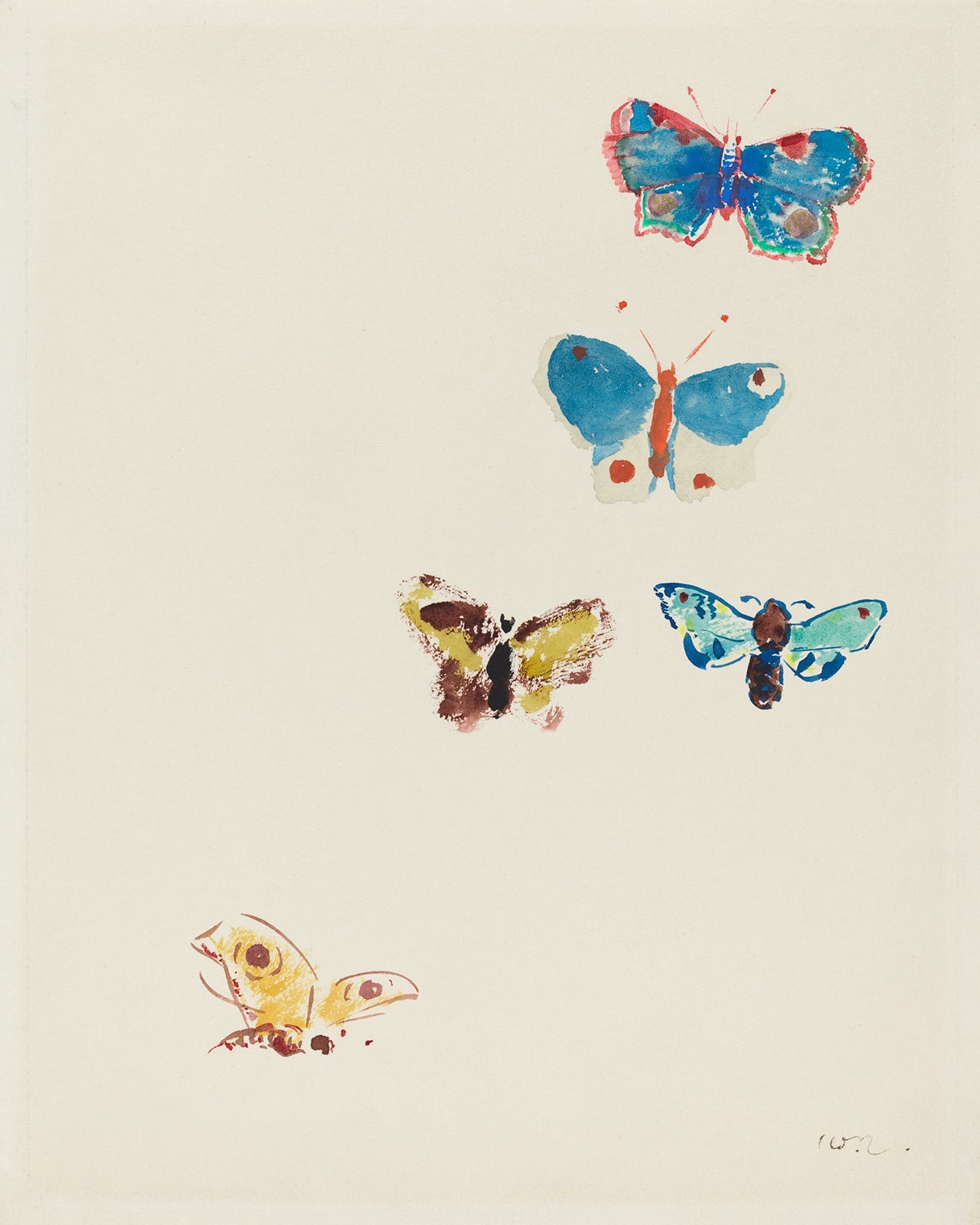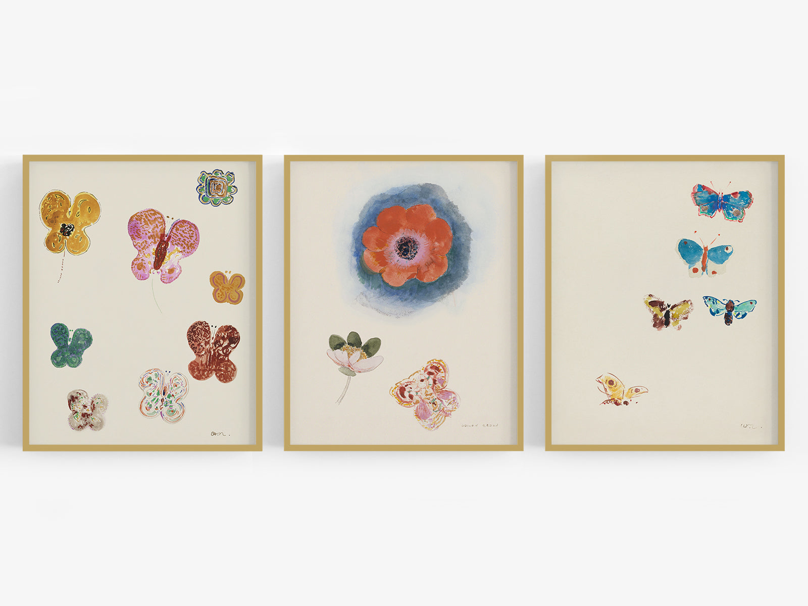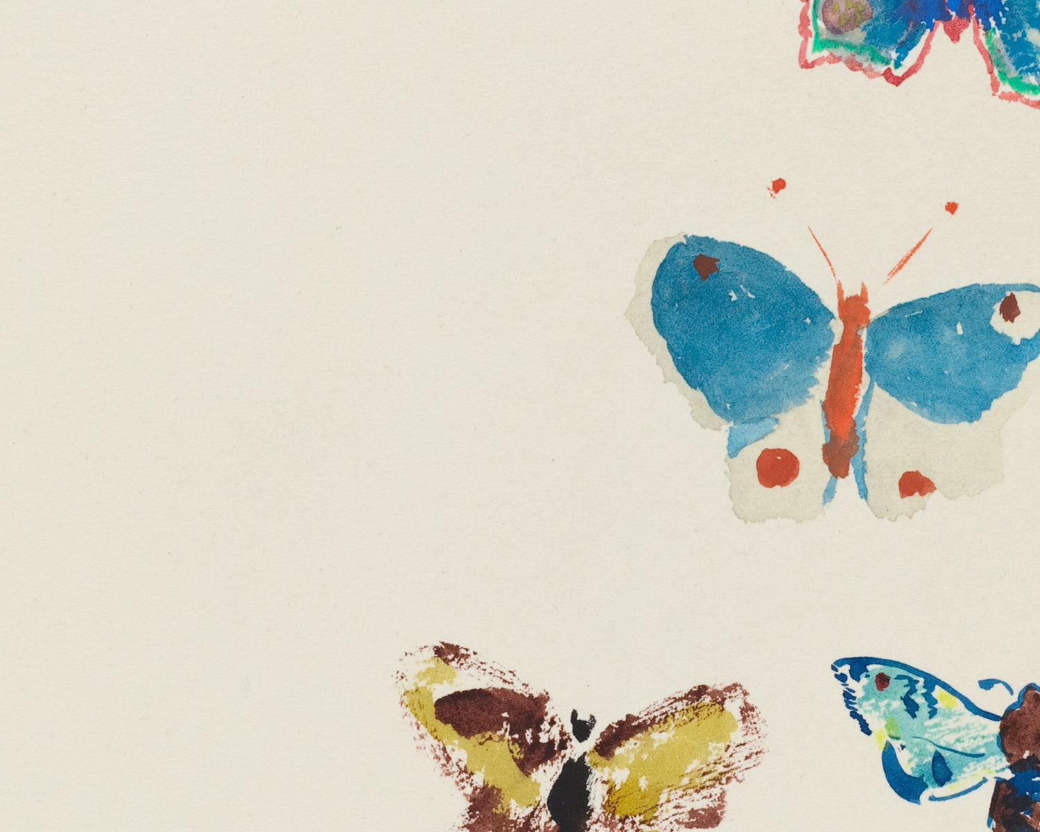 Set of three watercolor butterfly vintage reproduction art prints, c. 1910-1914.