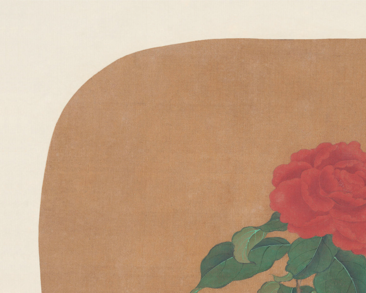 Camellia flowers fan vintage reproduction art print (printed on smooth matte paper), c. Ming or Qing Dynasty