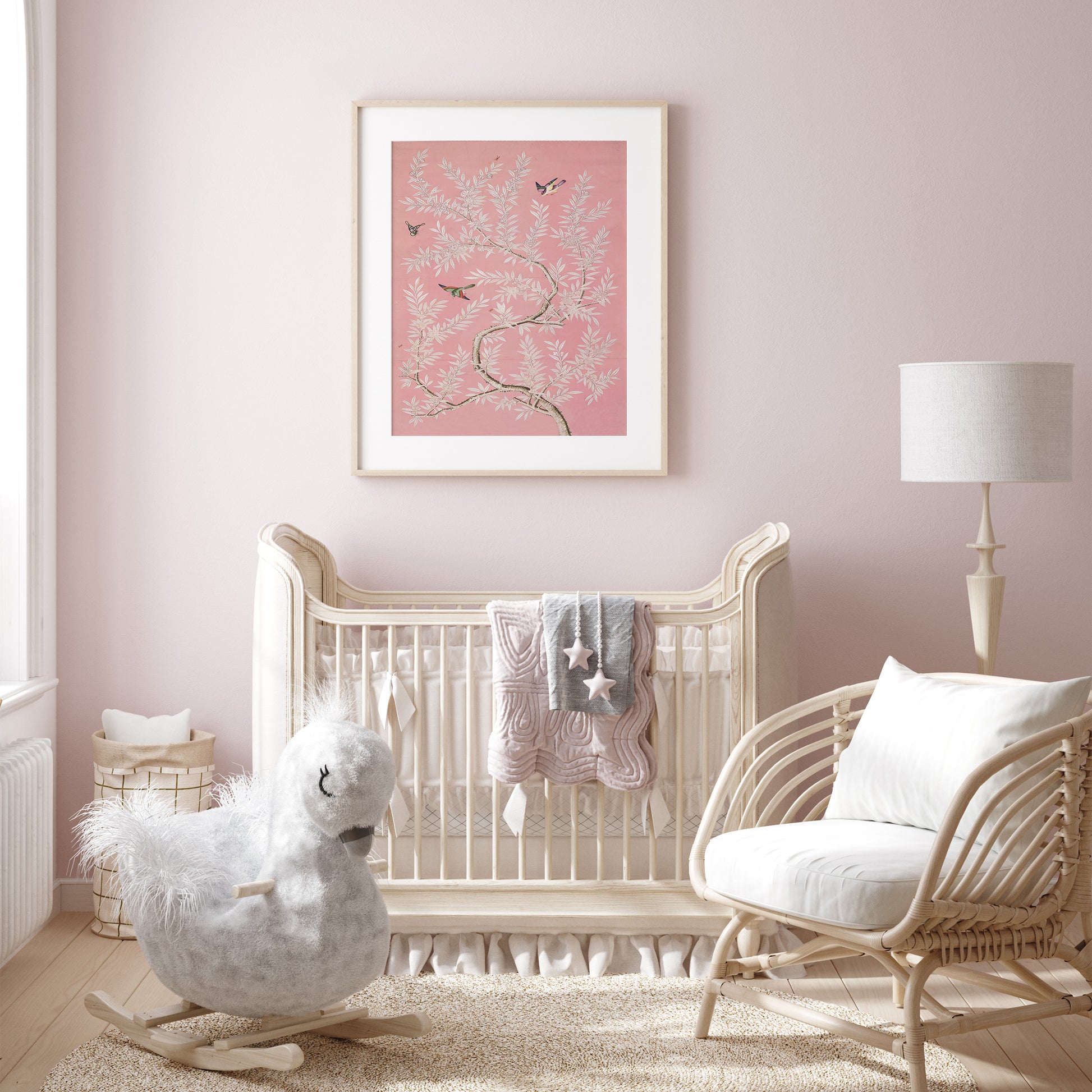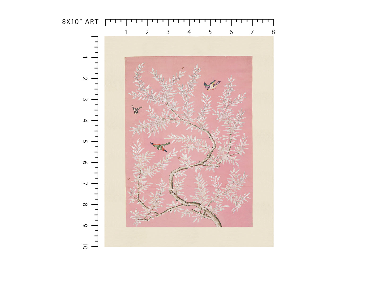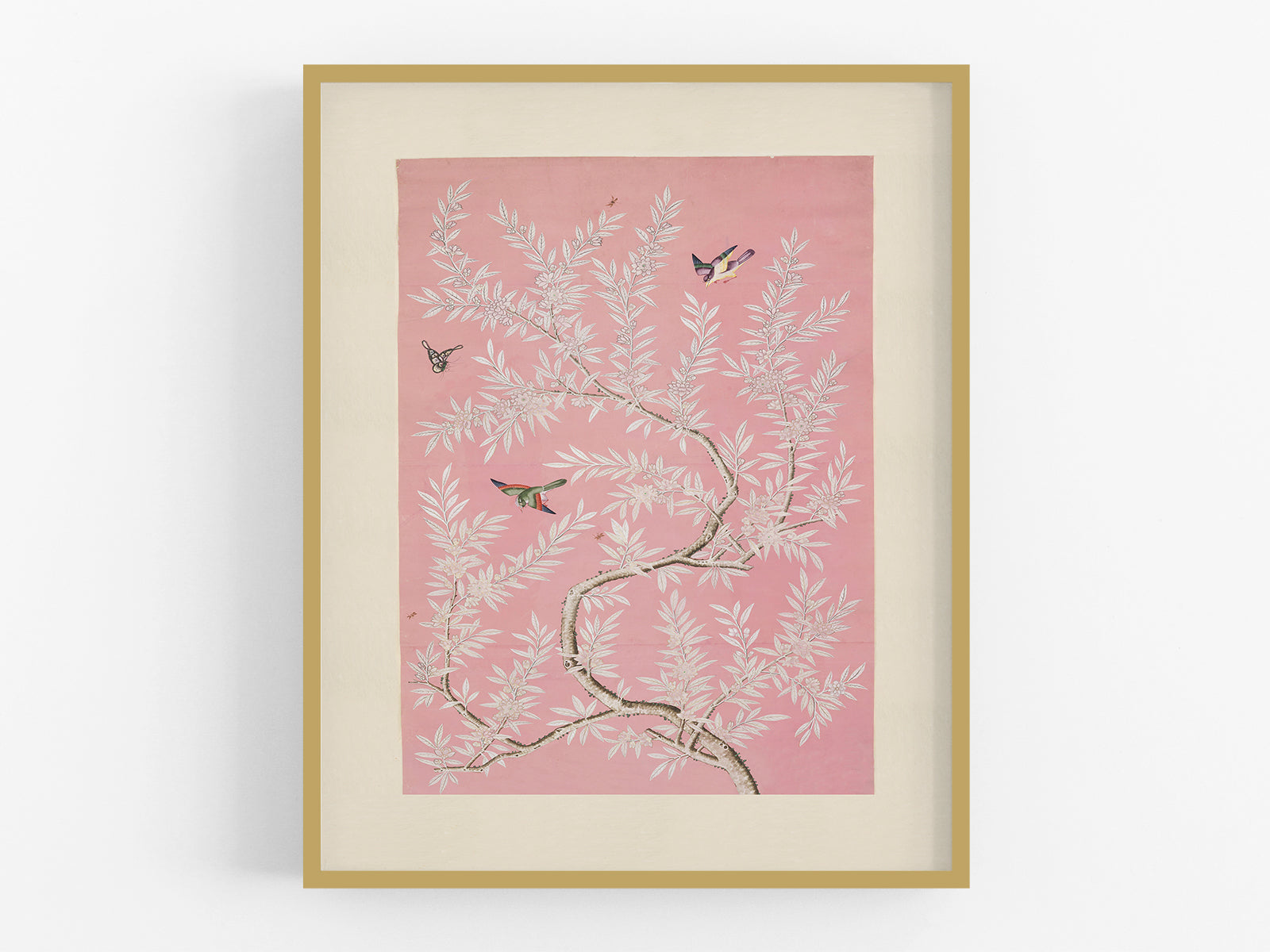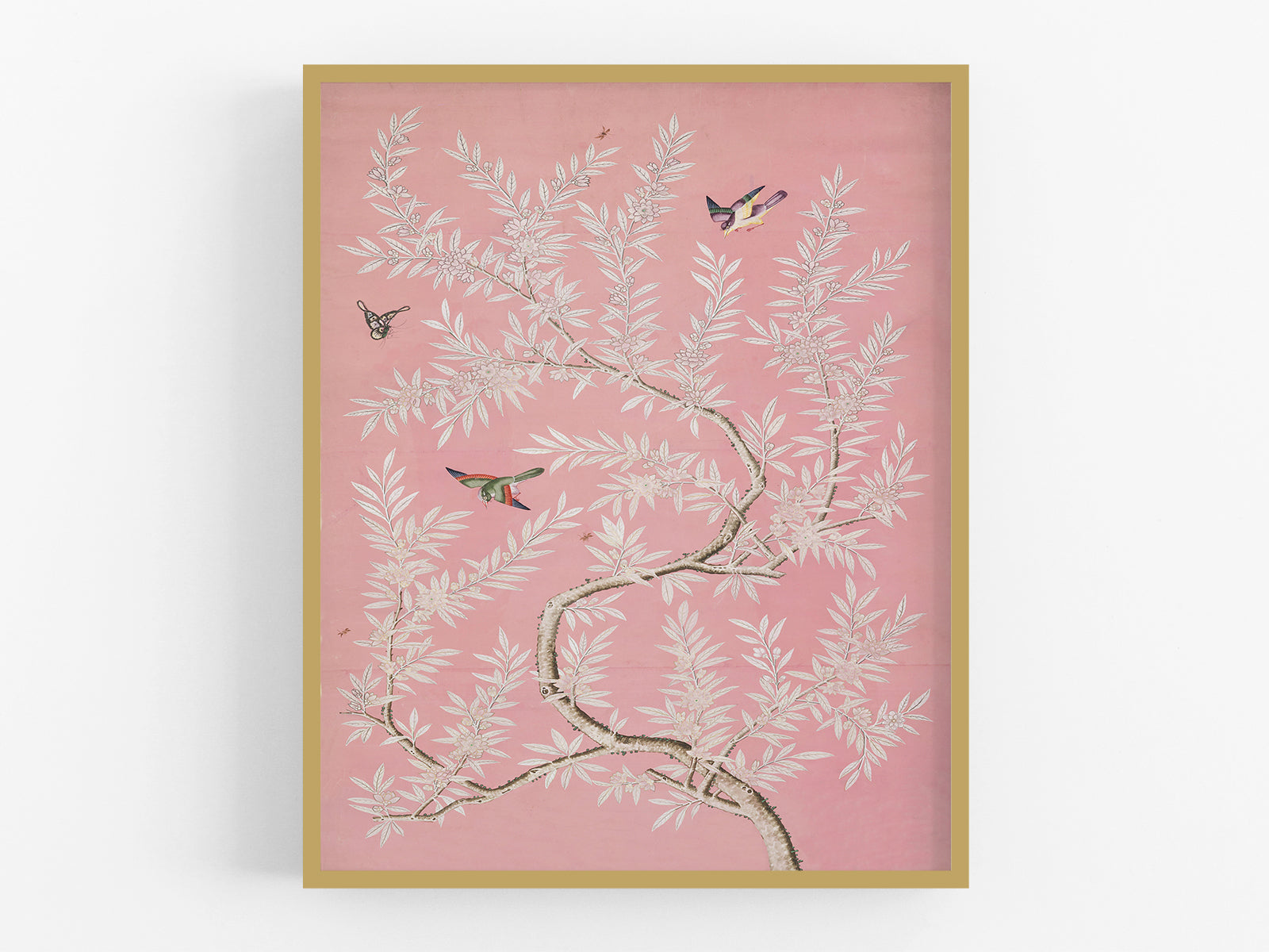 Chinese Birds and Foliage Chinoiserie Art Print: Pink Colorway