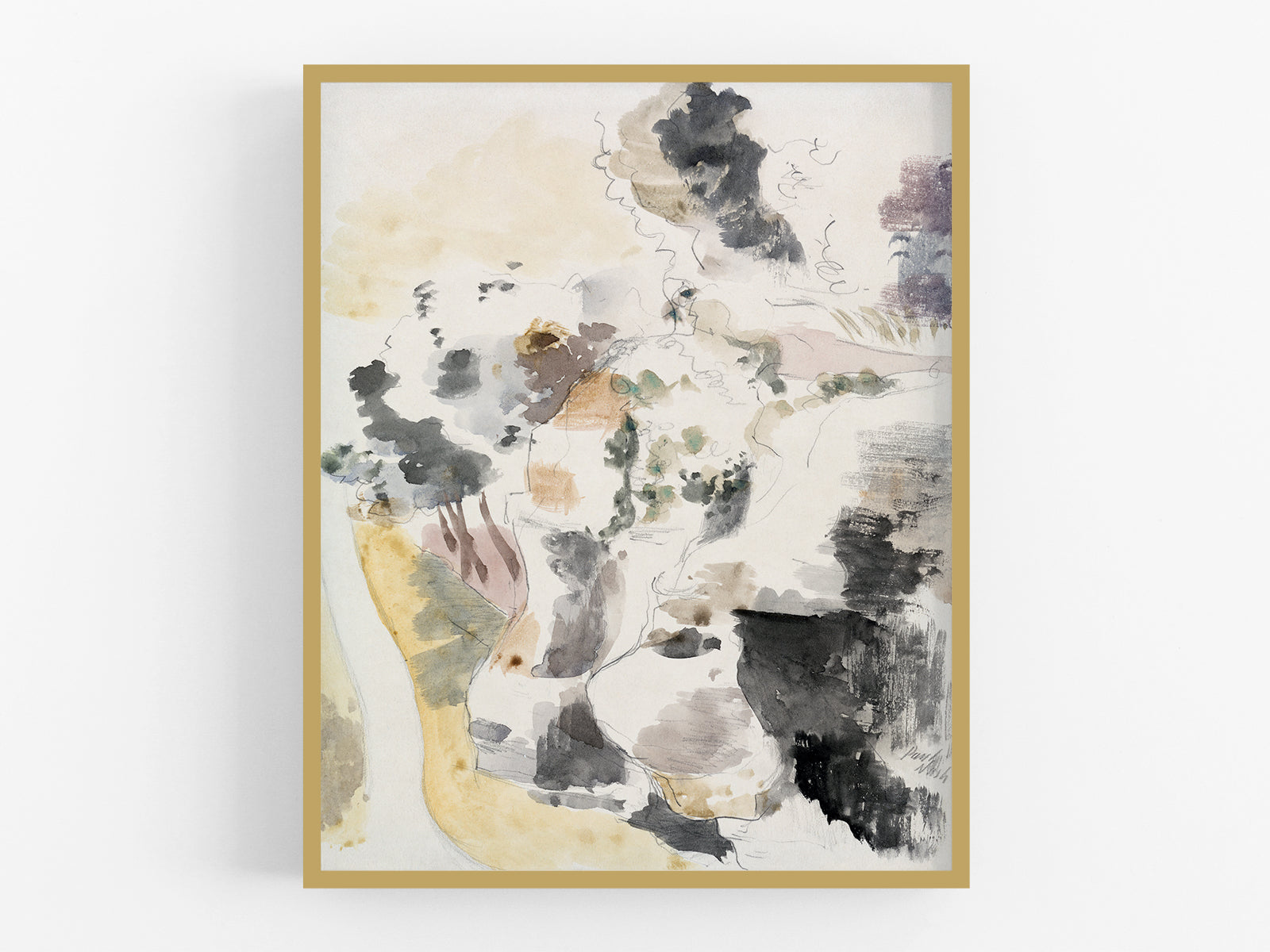 Cliffs abstract watercolor, vintage reproduction art print, , c. 1930.
