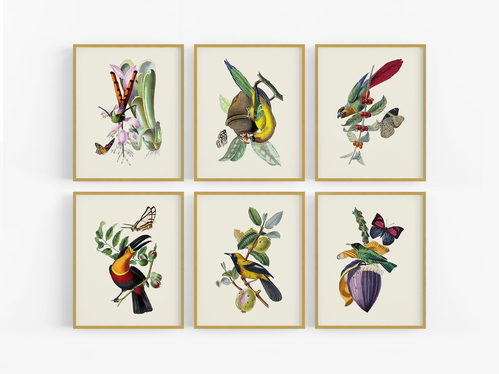 Colorful Tropical Bird Art Prints - Set of Six