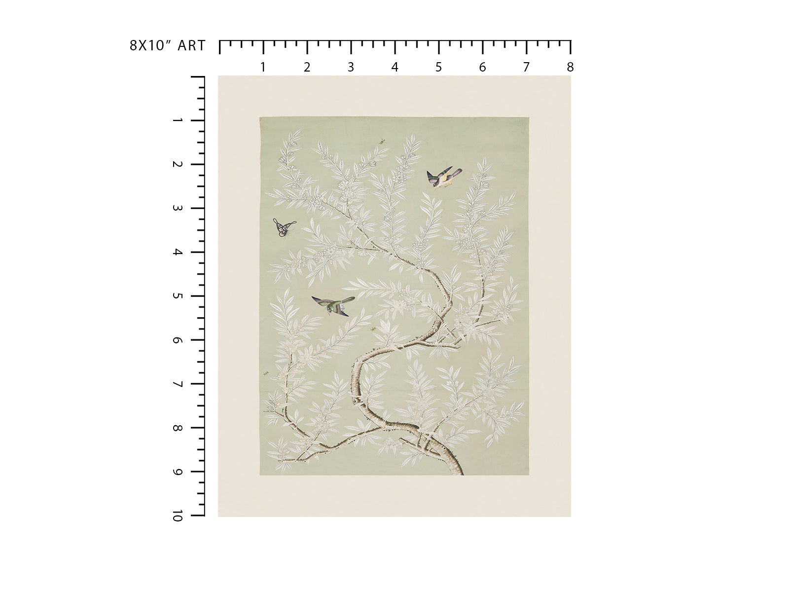 Chinese Birds and Foliage Chinoiserie Art Print: Mint Colorway