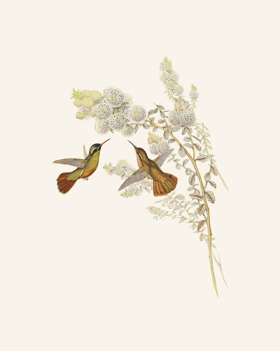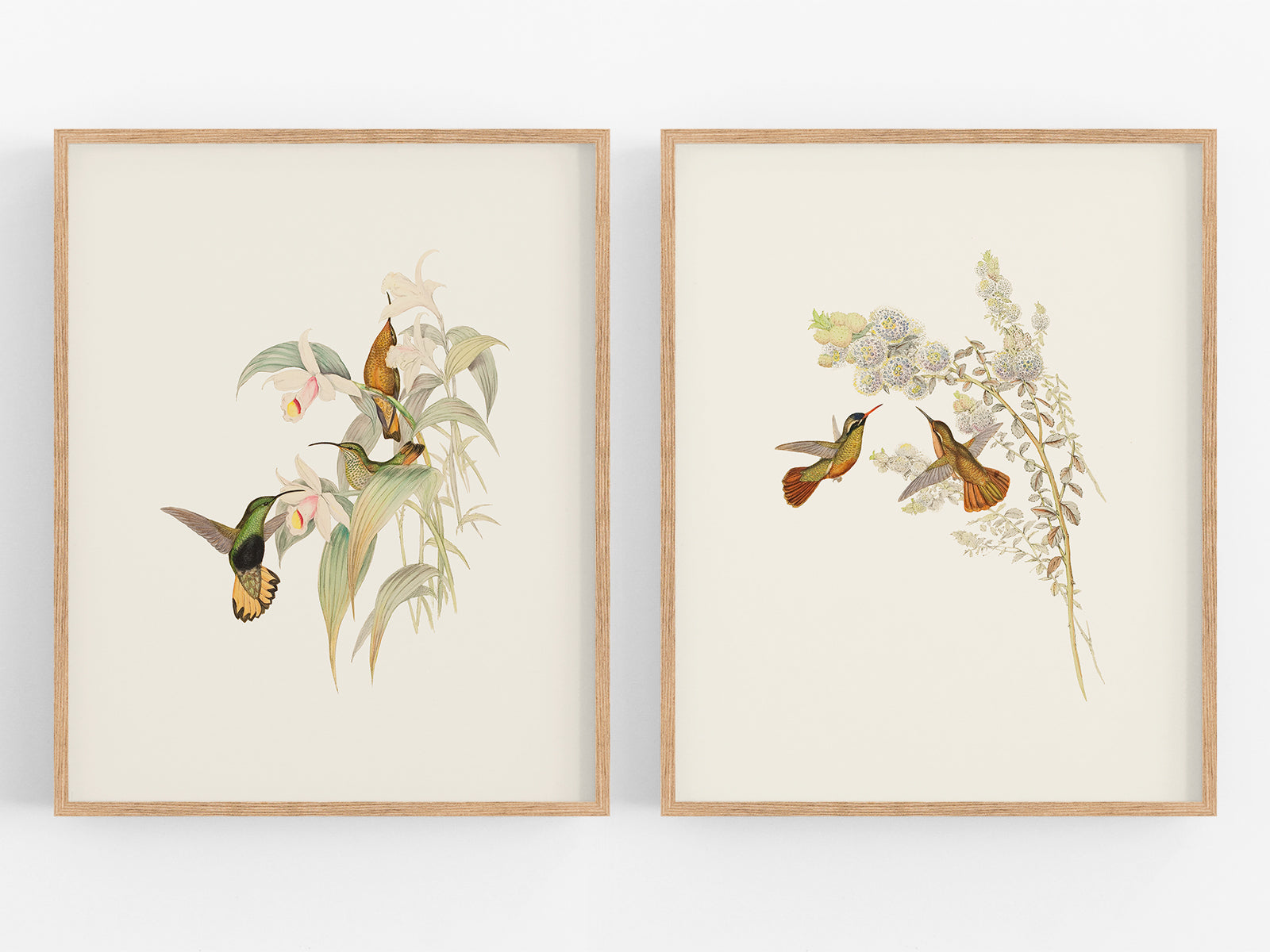 Hummingbird & Flowers Botanical Art Prints, Set #2 - Set of Two