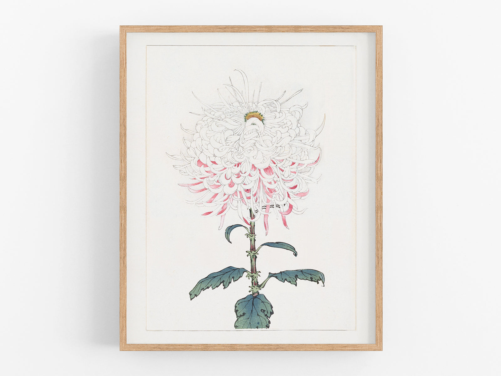 Japanese pink chrysanthemum flower reproduction art print, c. 1893.
