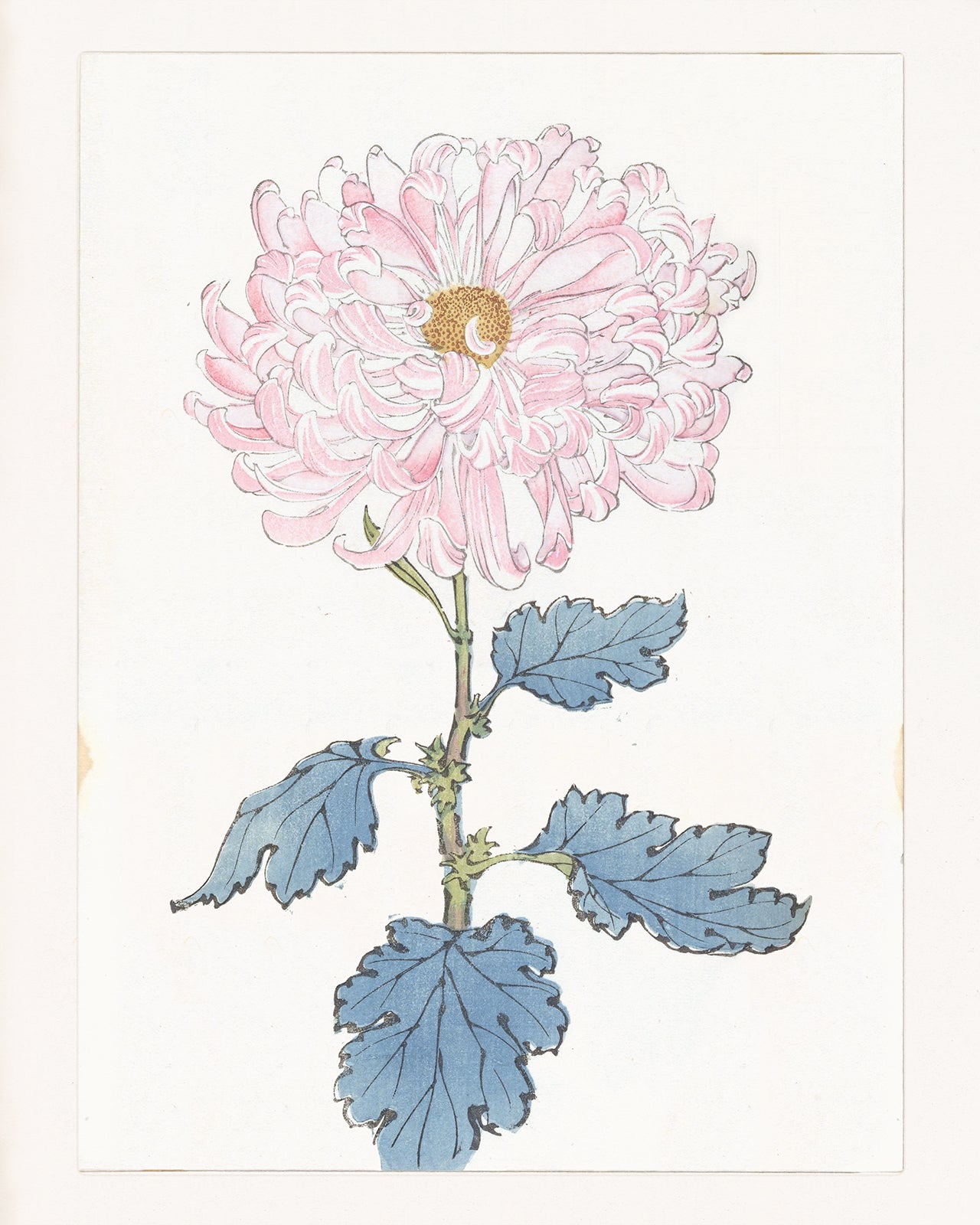 Set of two (2) Japanese pink chrysanthemum flower reproduction art prints, c. 1893.