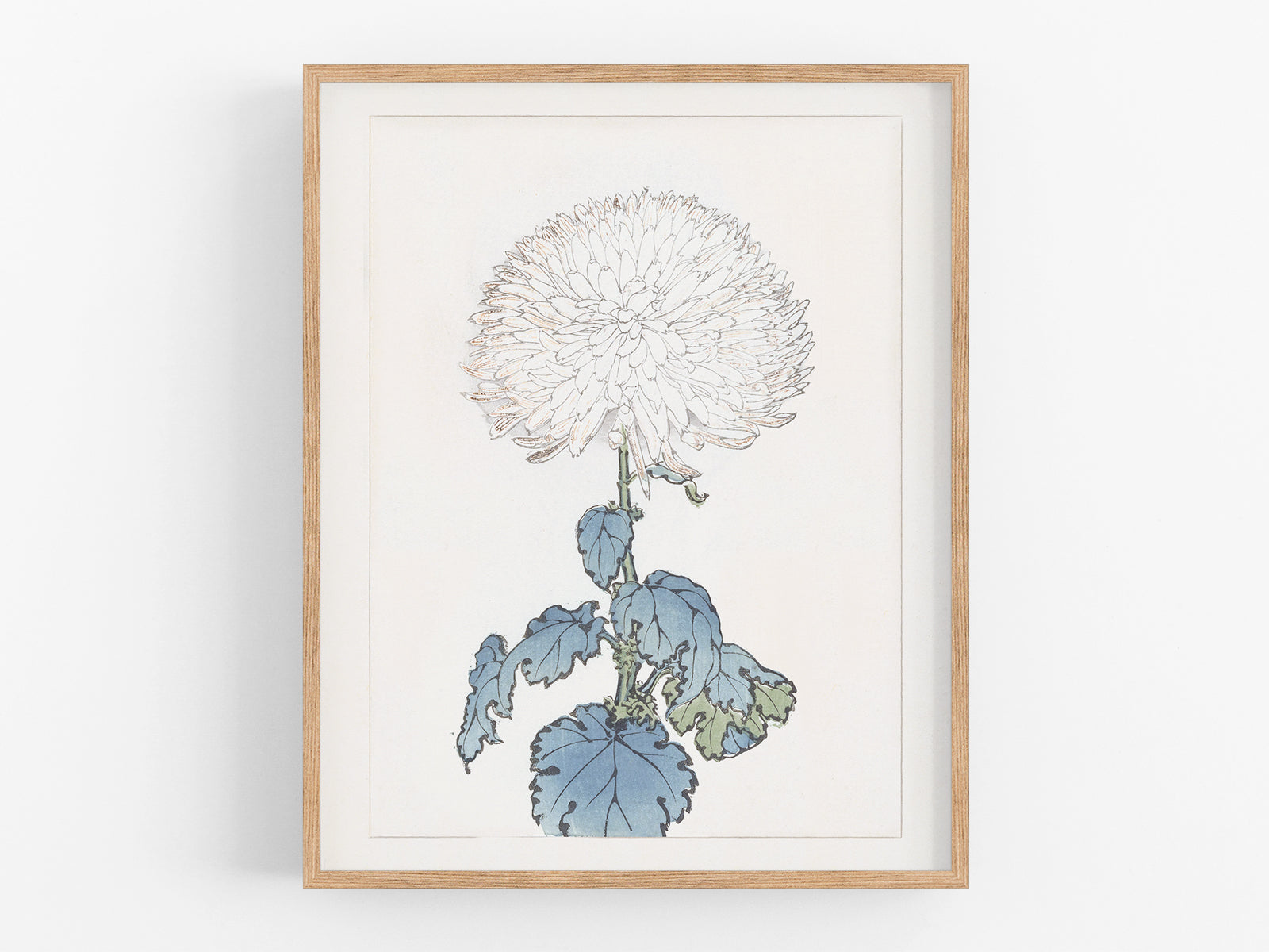 Japanese white chrysanthemum flower reproduction art print, c. 1893.