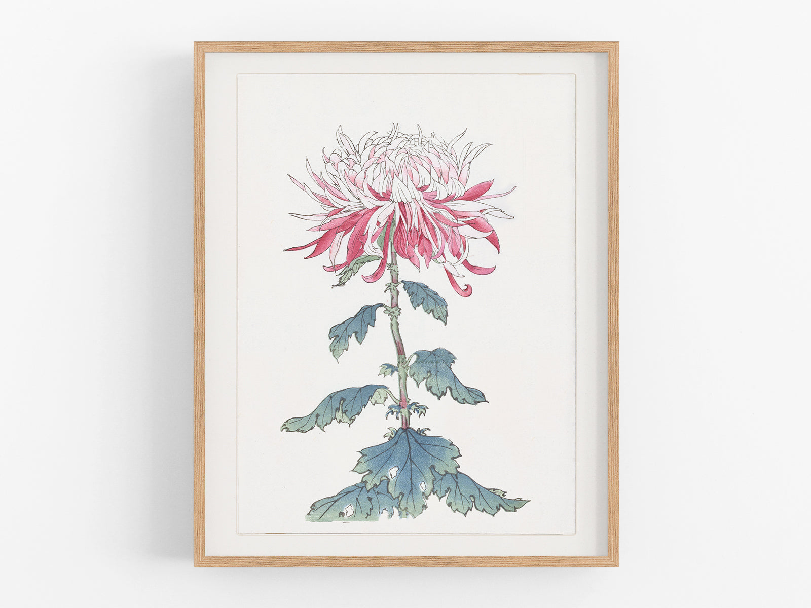 Japanese pink chrysanthemum flower reproduction art print, c. 1893.