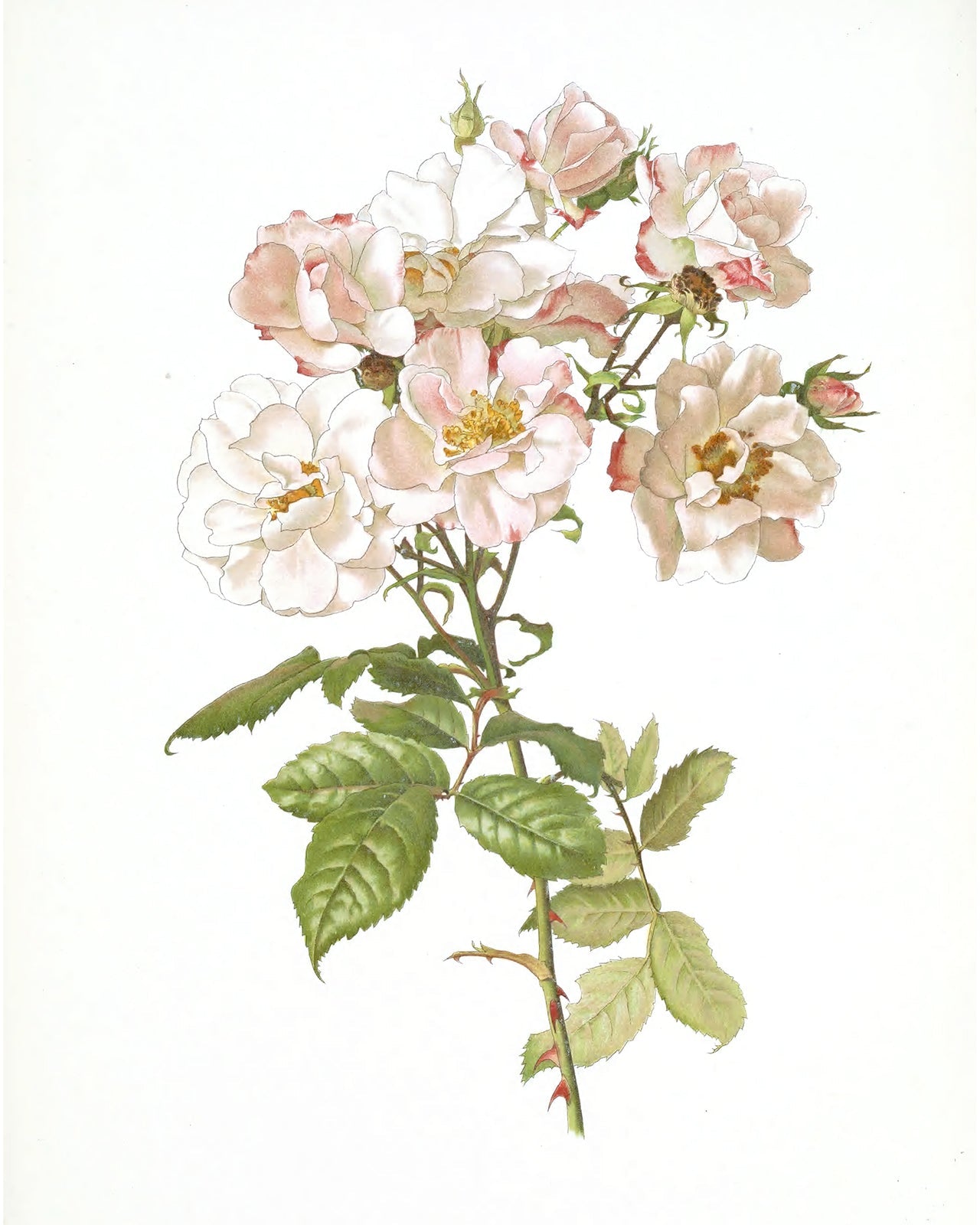 Pink Rose Flower Botanical Art Prints - Set of Two