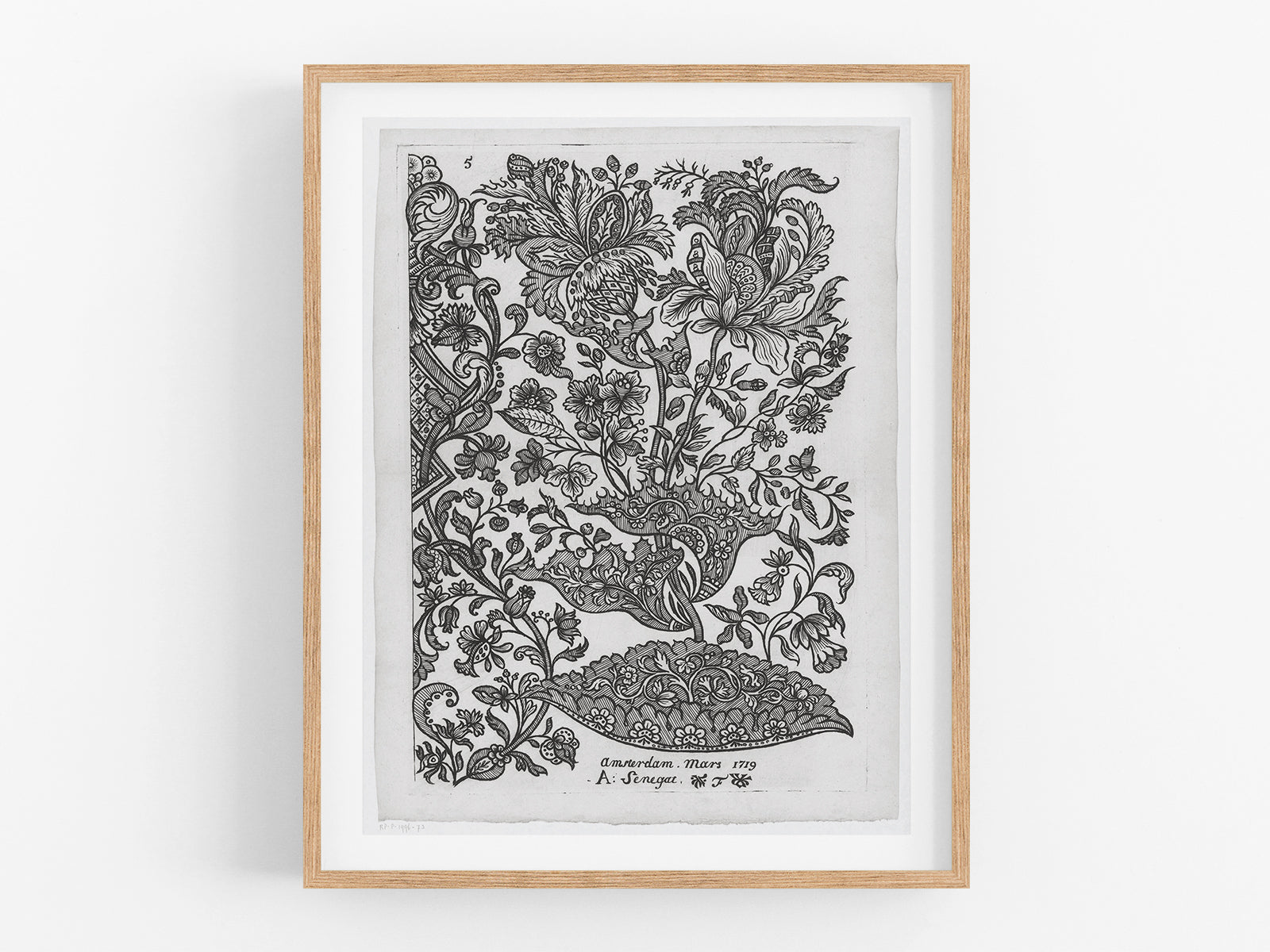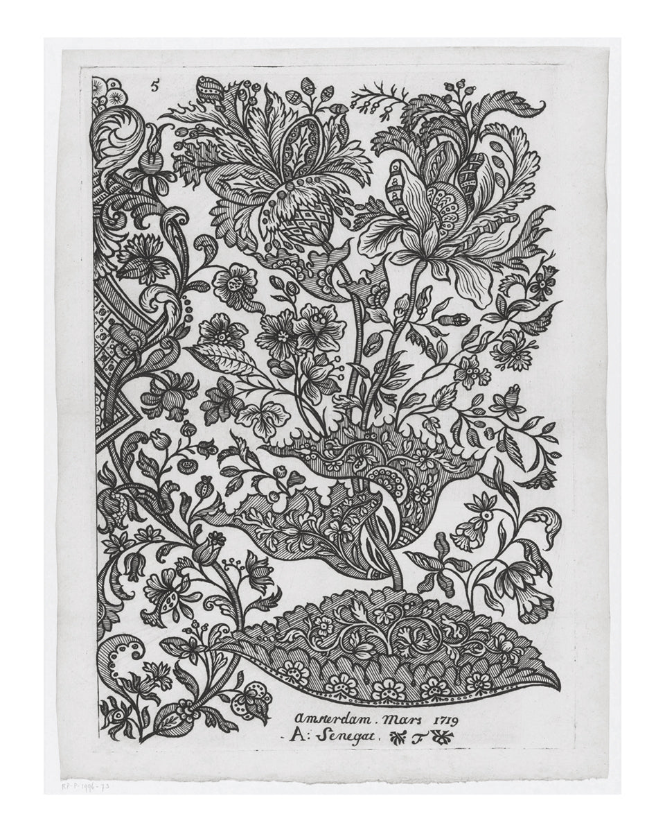Dutch flower design etching #73, vintage reproduction art print, c. 1719.