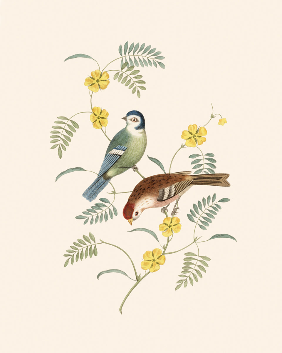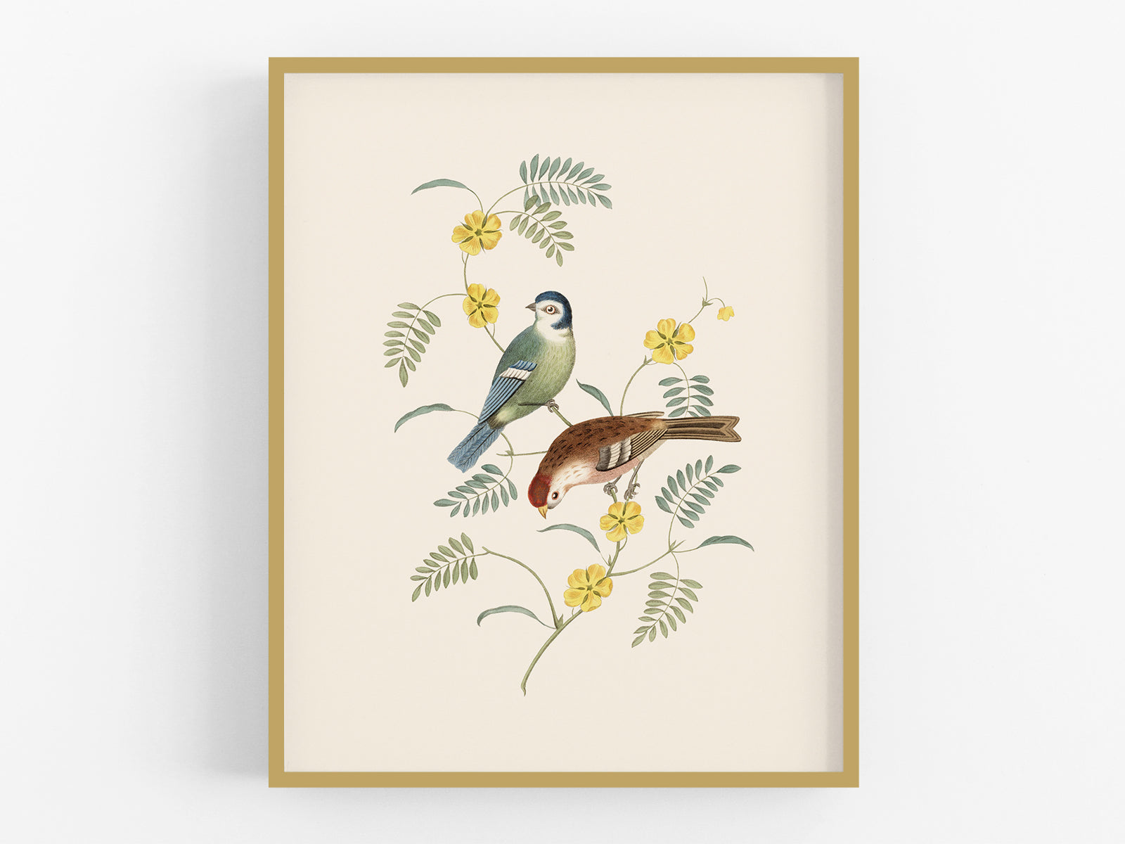 Tom-tit and Red Pole vintage reproduction art print, c. 1817.
