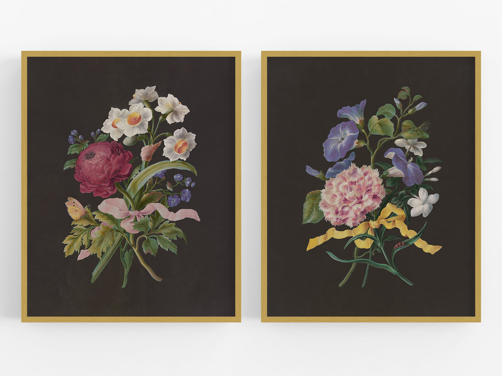 Flower Bouquet with Ribbon Art Prints - Set of Two