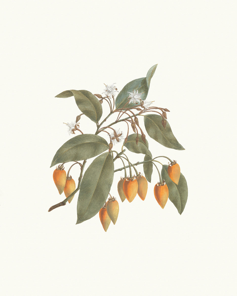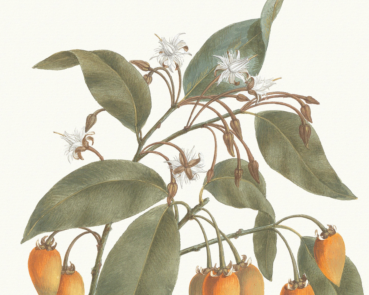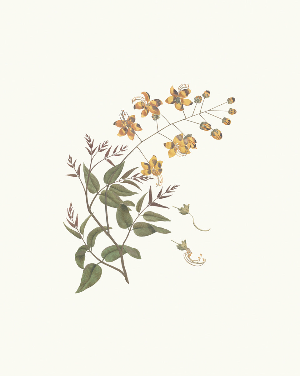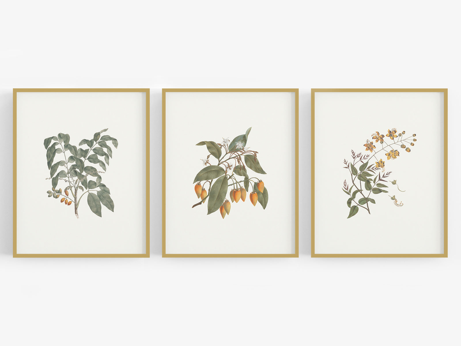 A set of three (3) flowering branches, vintage reproduction botanical flower art prints, c. 1769-1773.