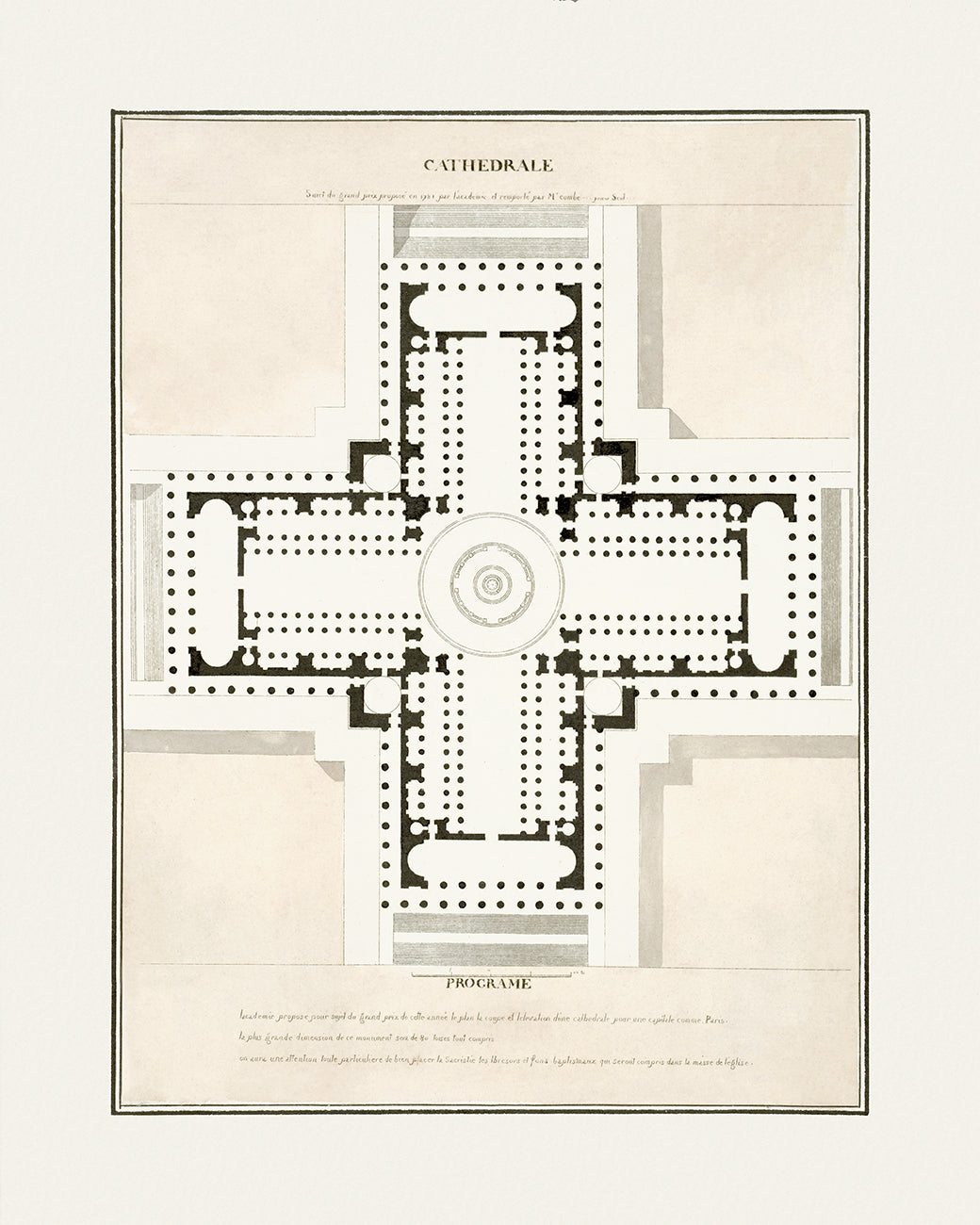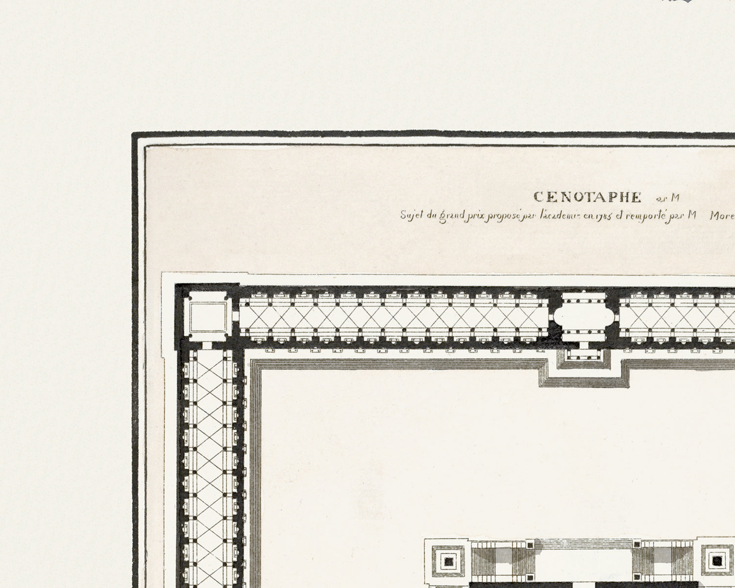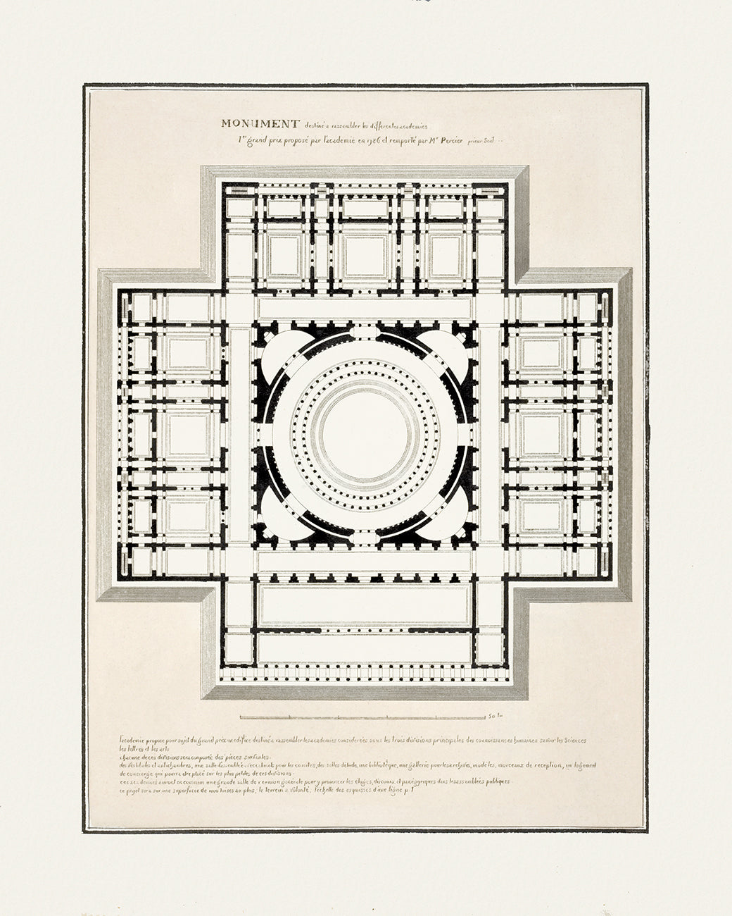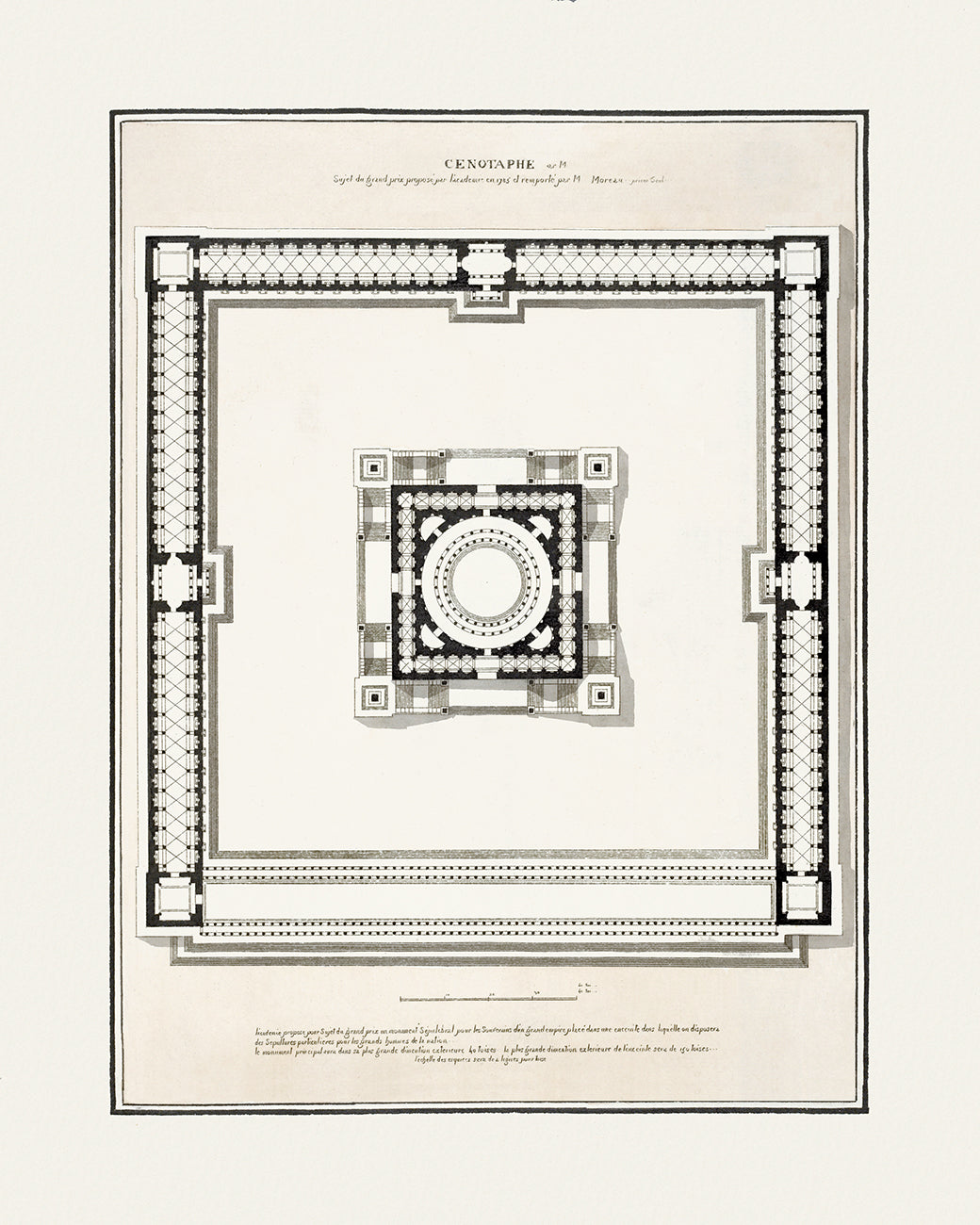 French architectural plan drawings, reproduction art prints, c. 1805.
