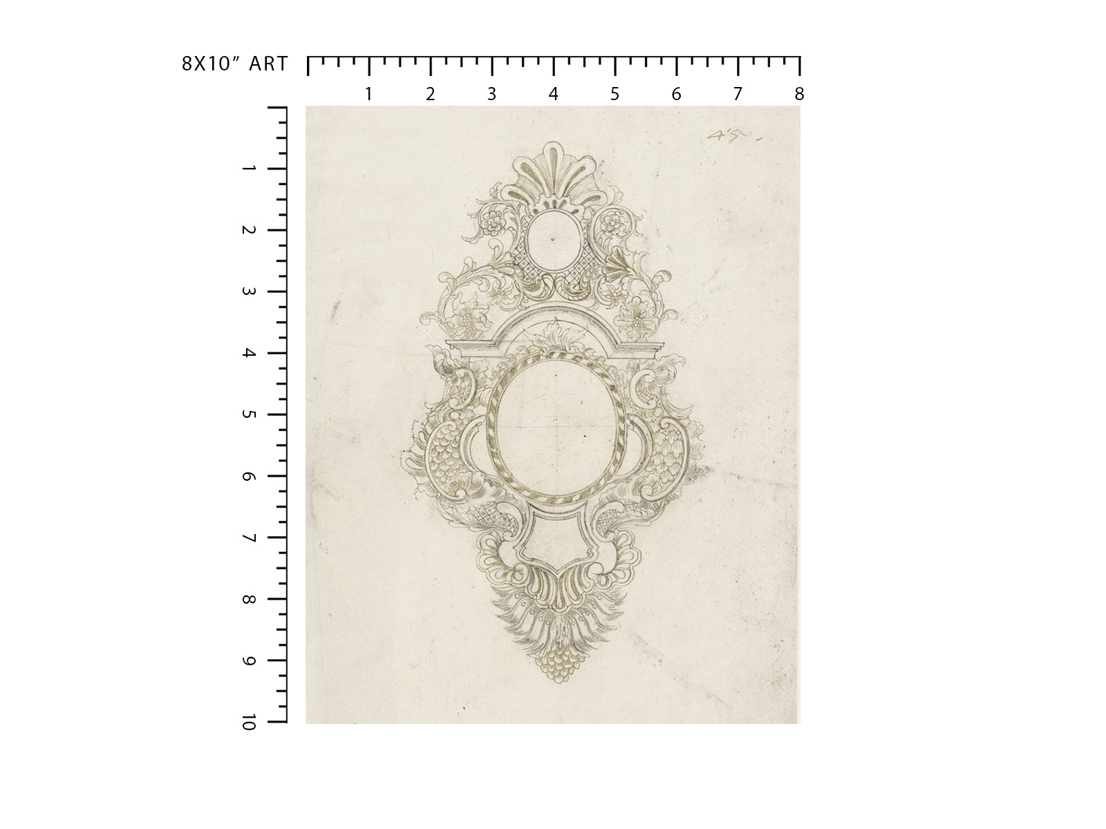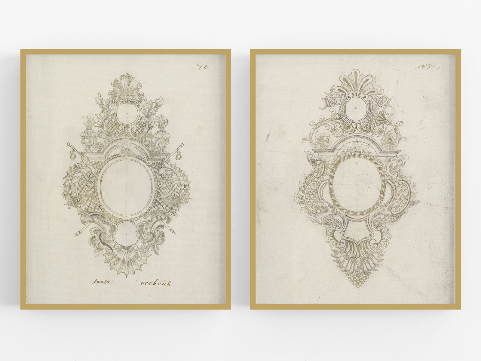 French medallion architectural drawing art prints - set of two (2), c. 1725-1750.