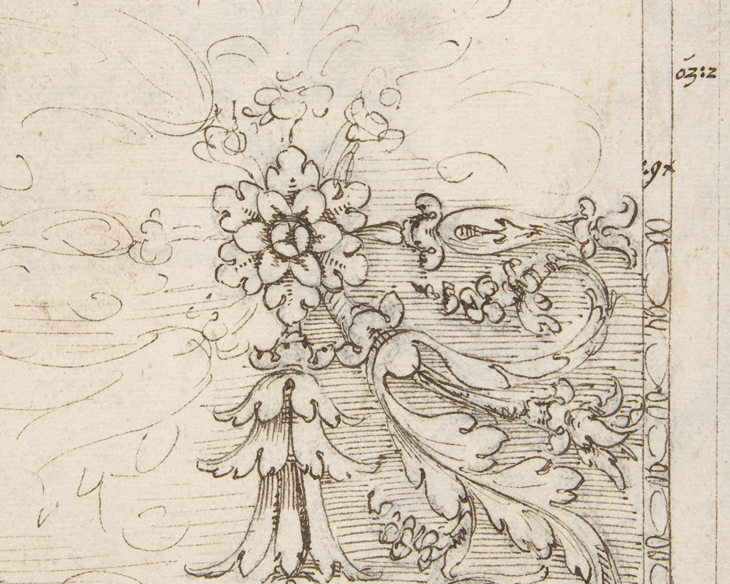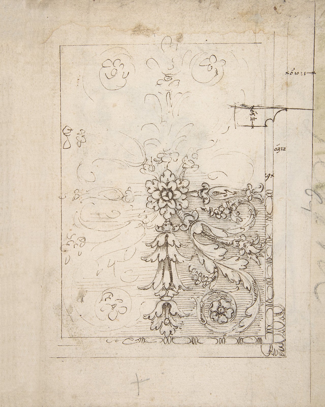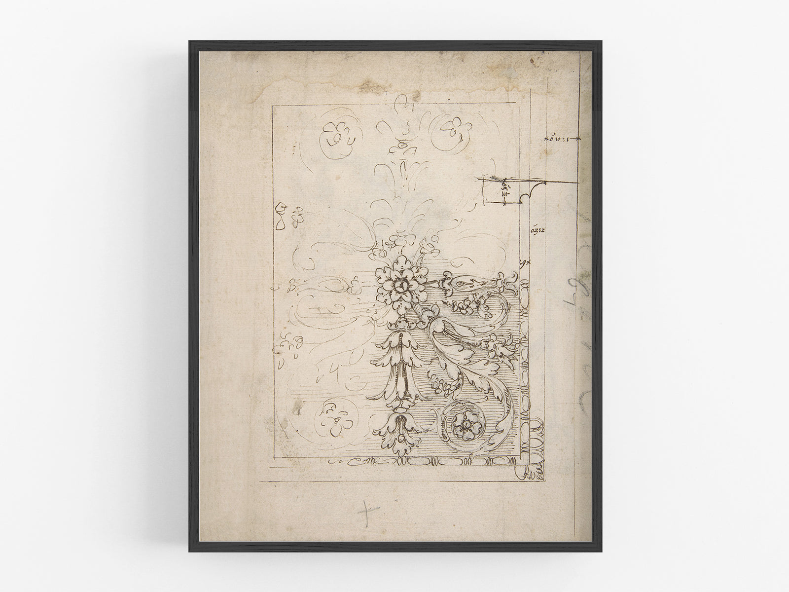 French ceiling plan drawing, reproduction art print, c. mid-16th century.