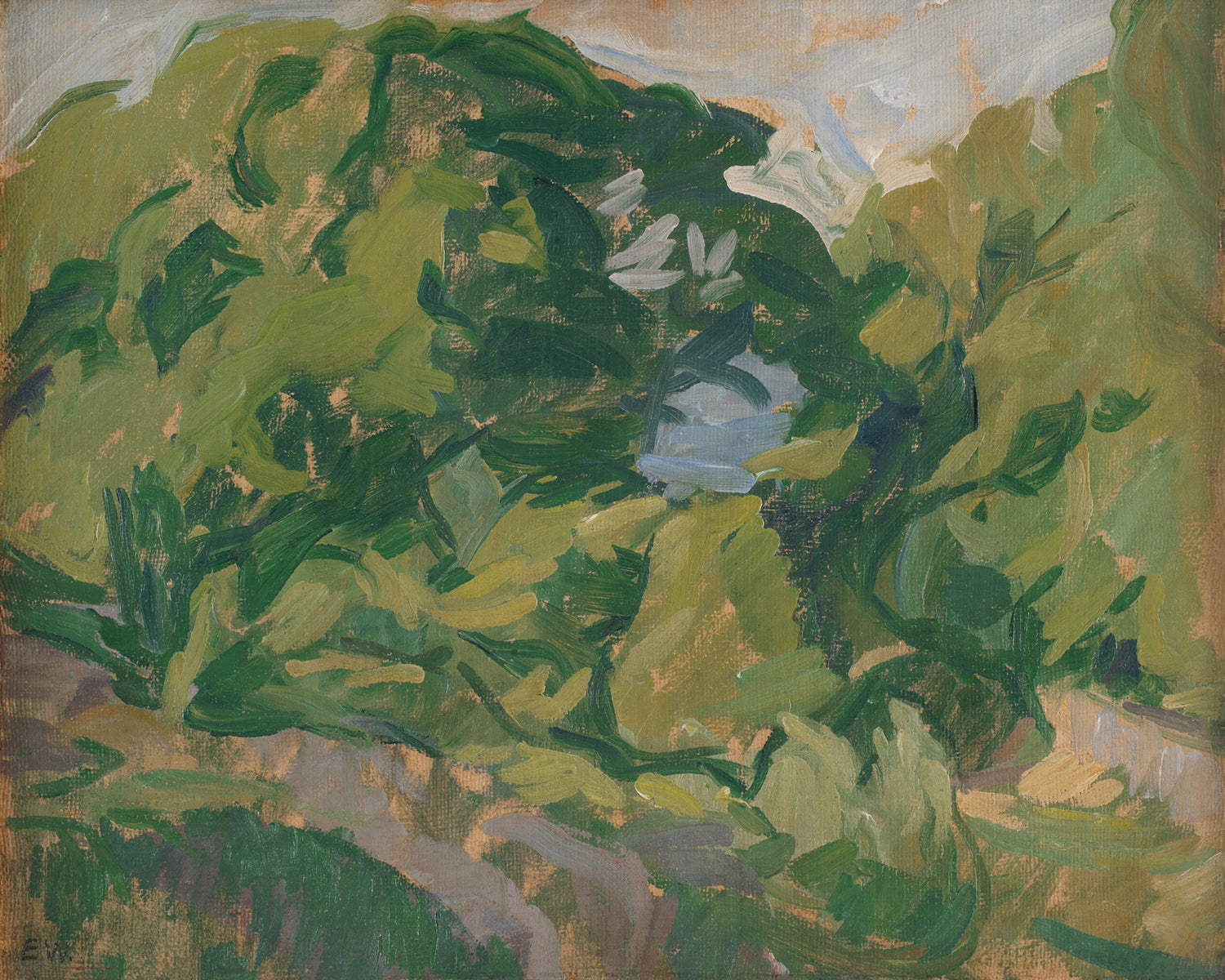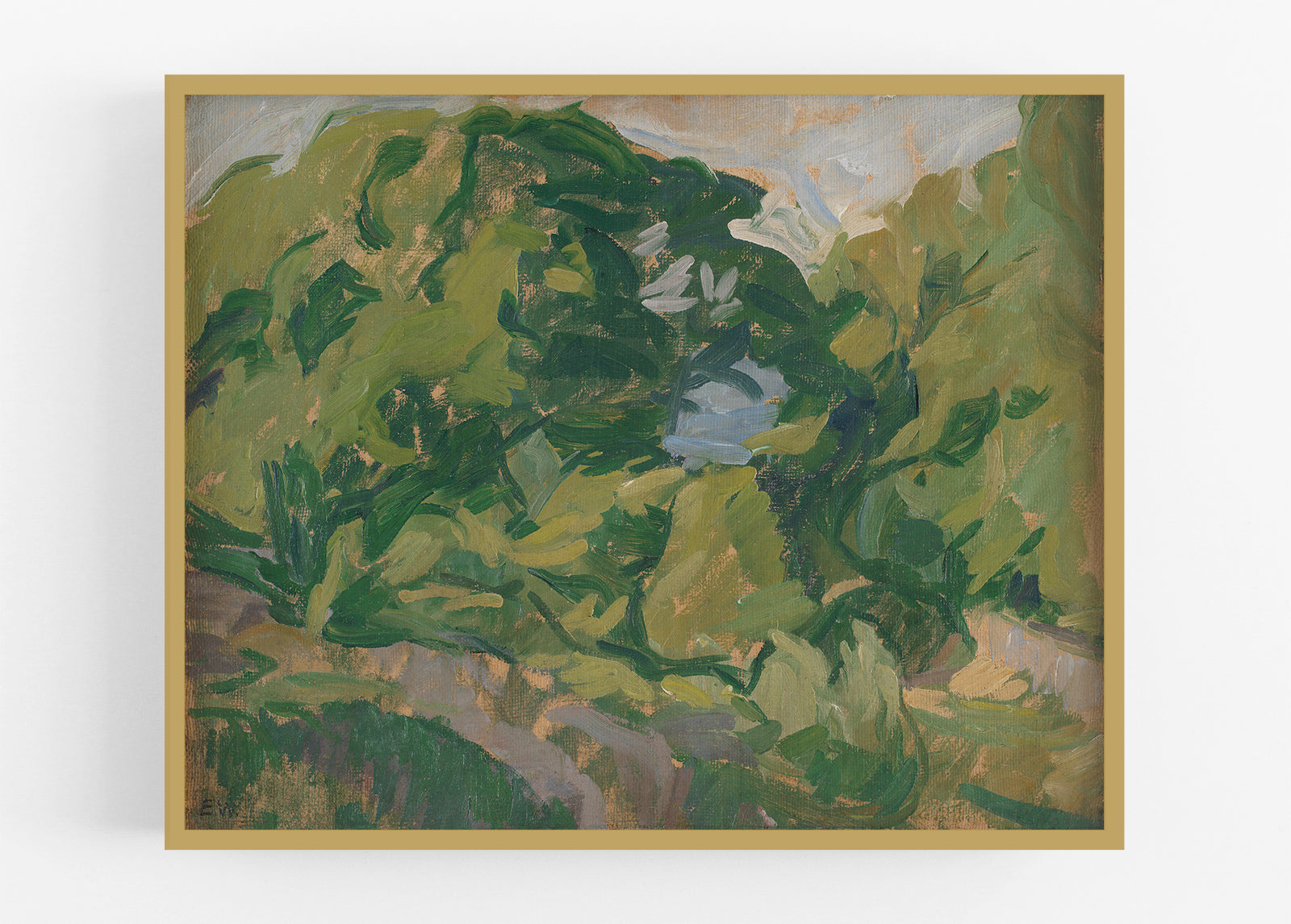 Abstract landscape in green, vintage reproduction art print, c. 1909-1913.