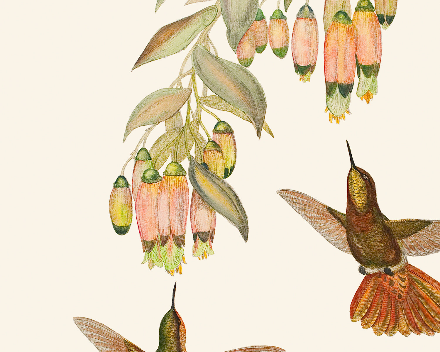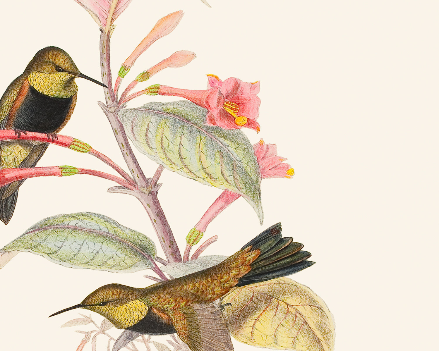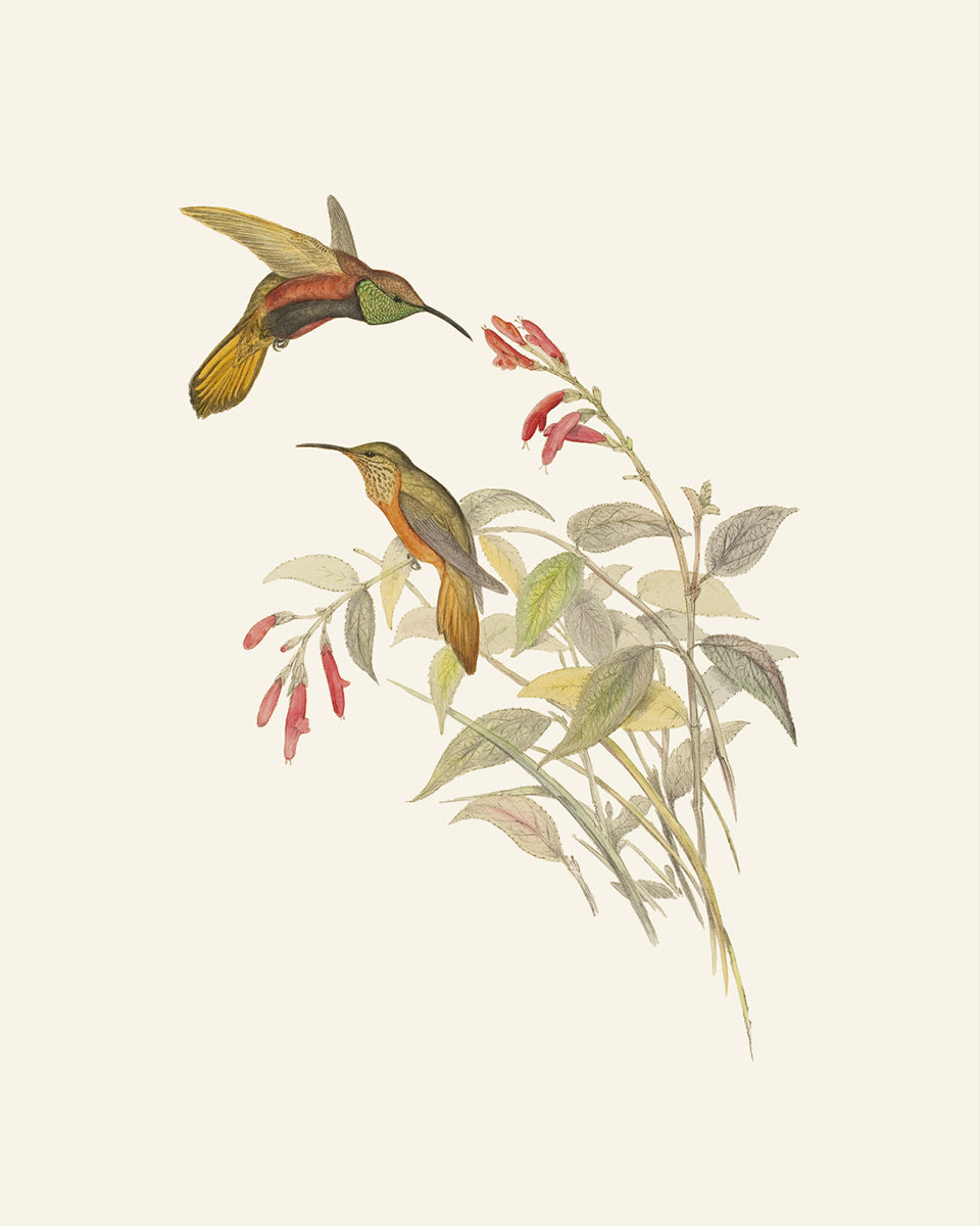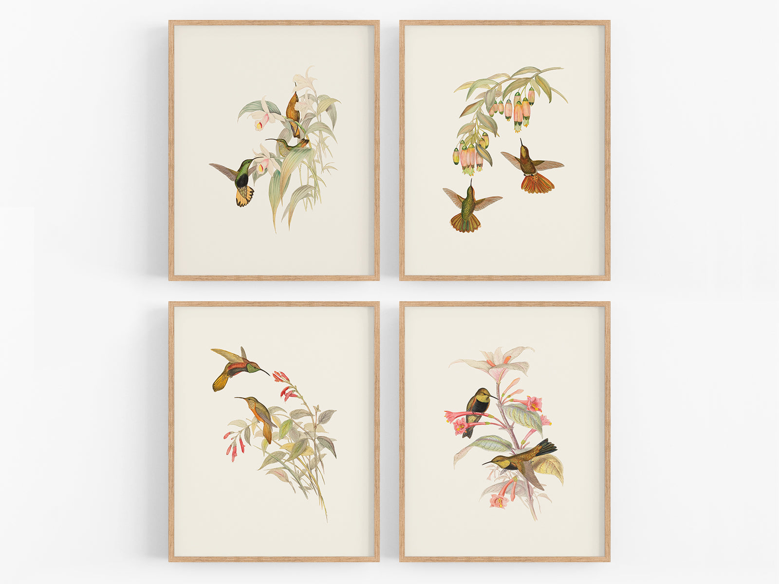 Hummingbird & Flowers Botanical Art Prints - Set of Four