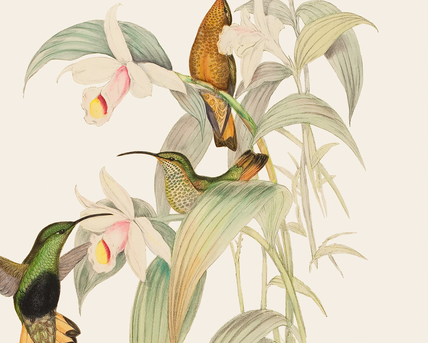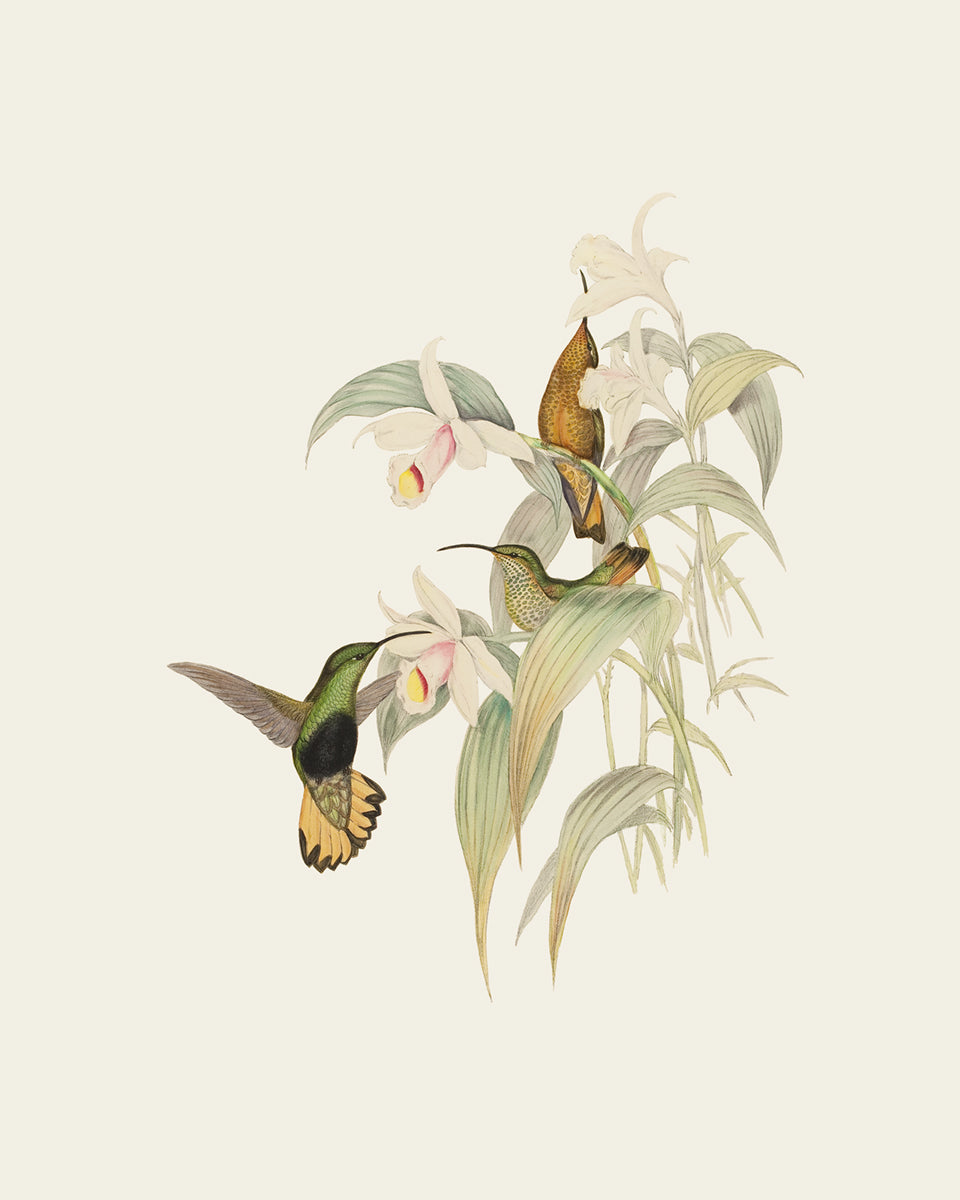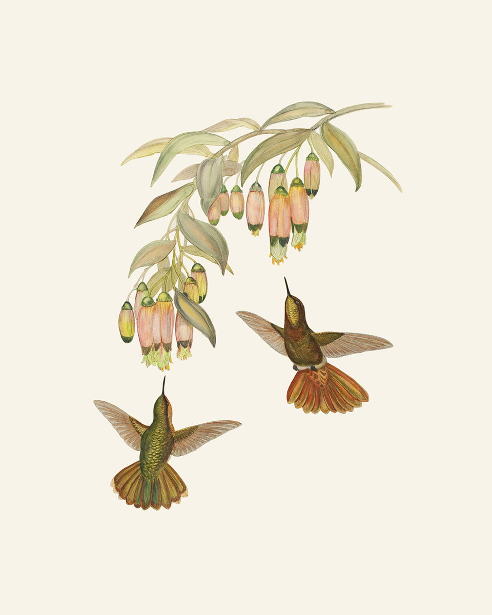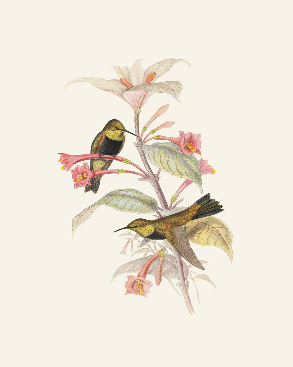Hummingbird & Flowers Botanical Art Prints - Set of Four
