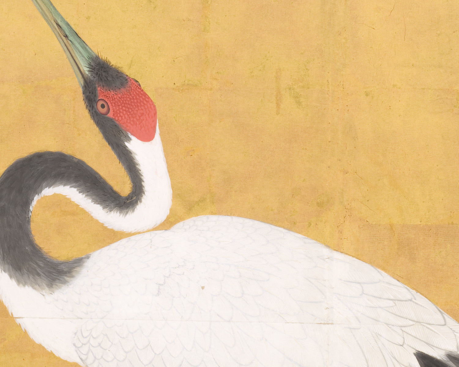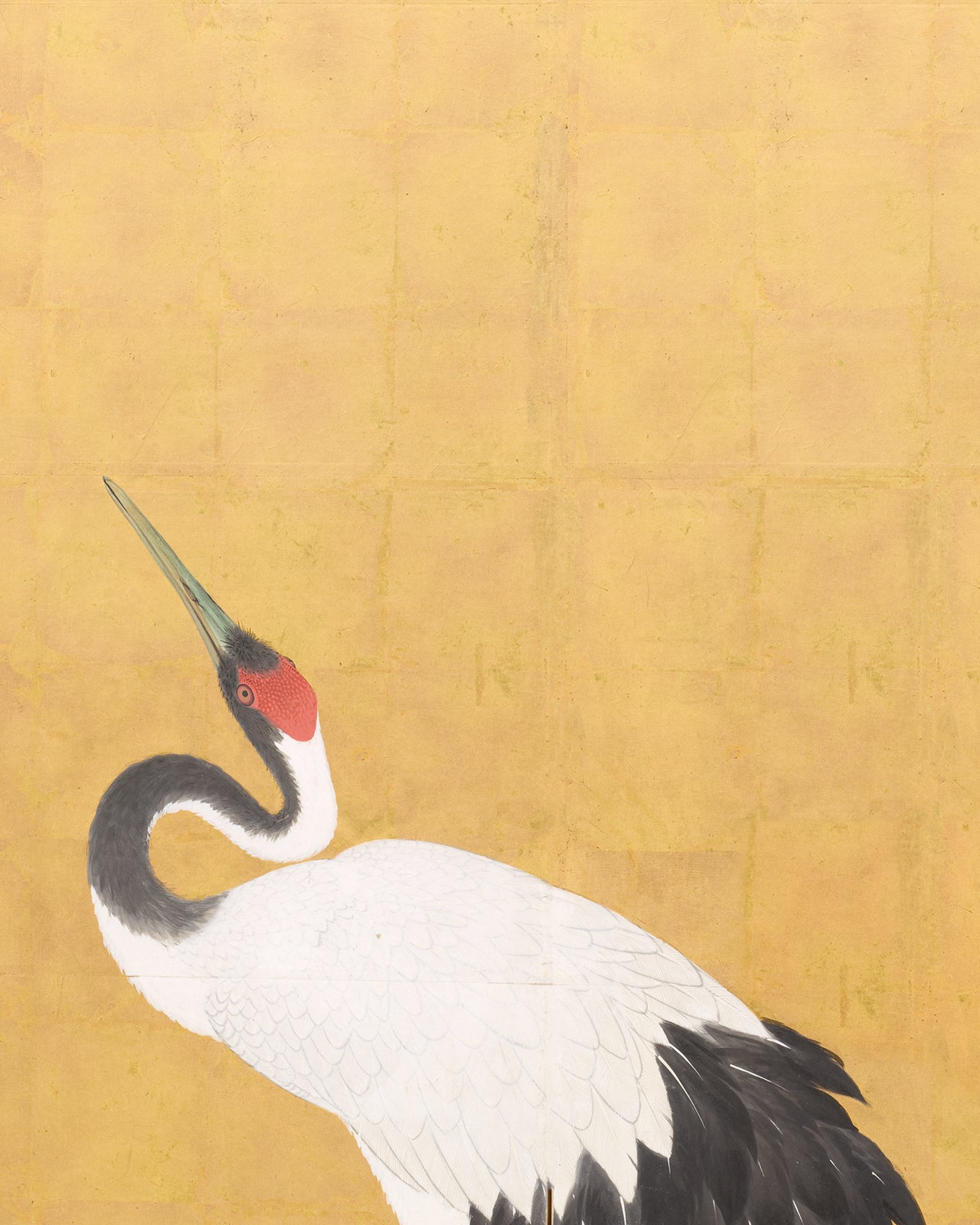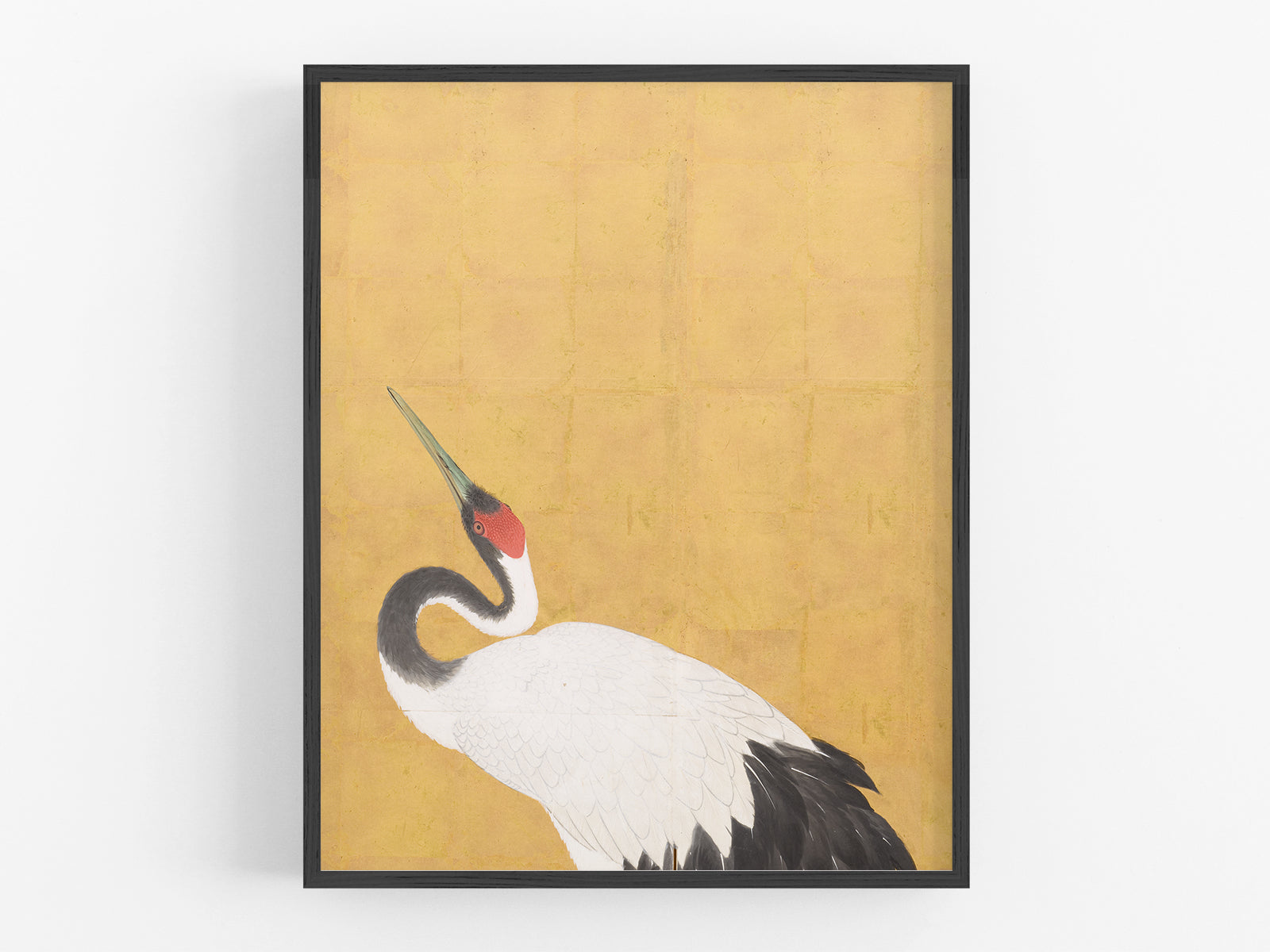 Japanese Crane Reproduction Art Print. Adapted from Japanese folding screens, c. 1772.