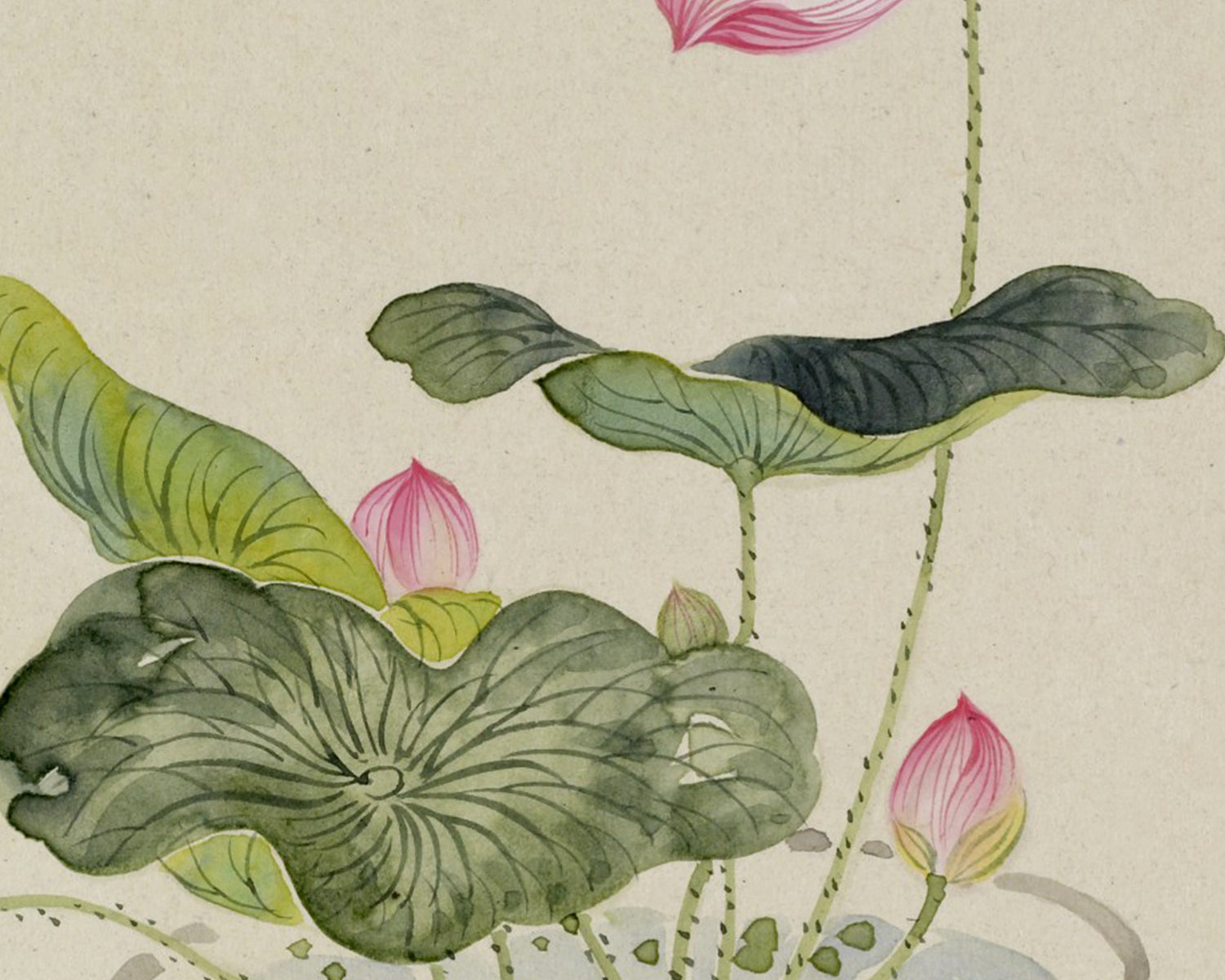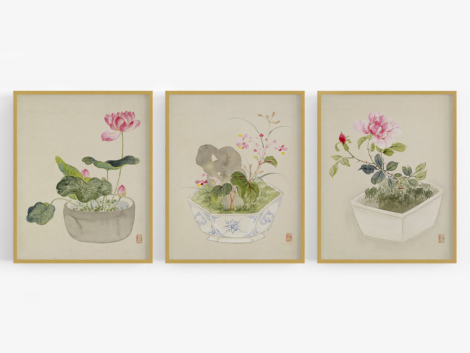 Japanese Lotus Flowers in Pots Art Prints - Set of Three