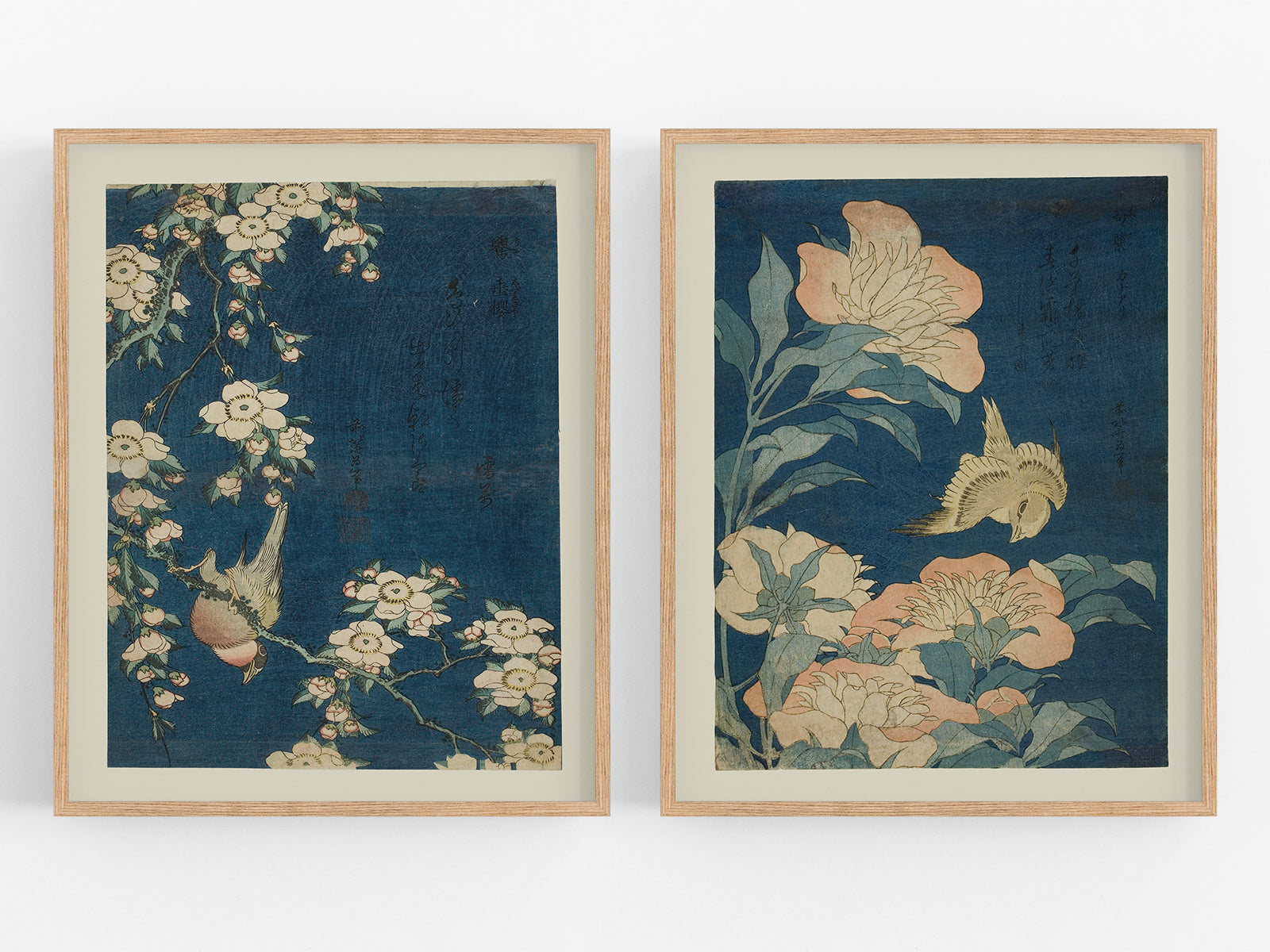 Japanese Woodblock Bird Art Prints - Set of Two
