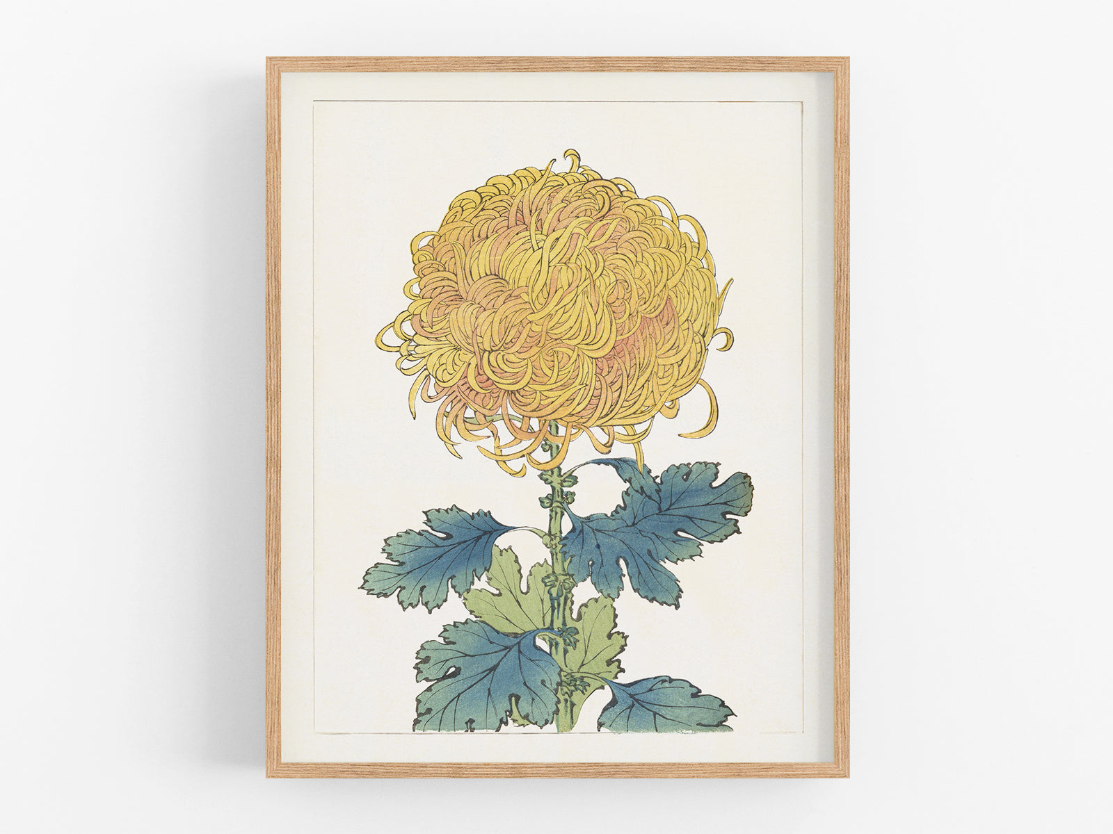 Japanese yellow chrysanthemum flower reproduction art print, c. 1893.