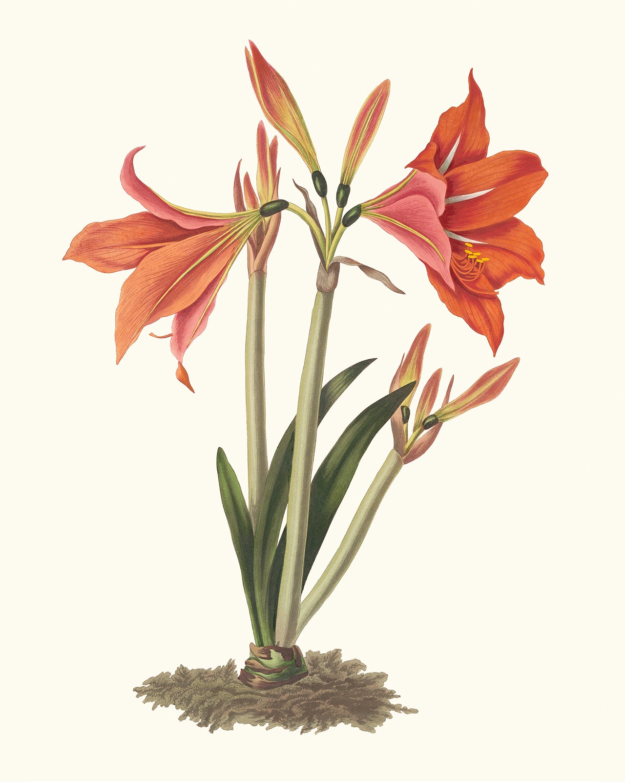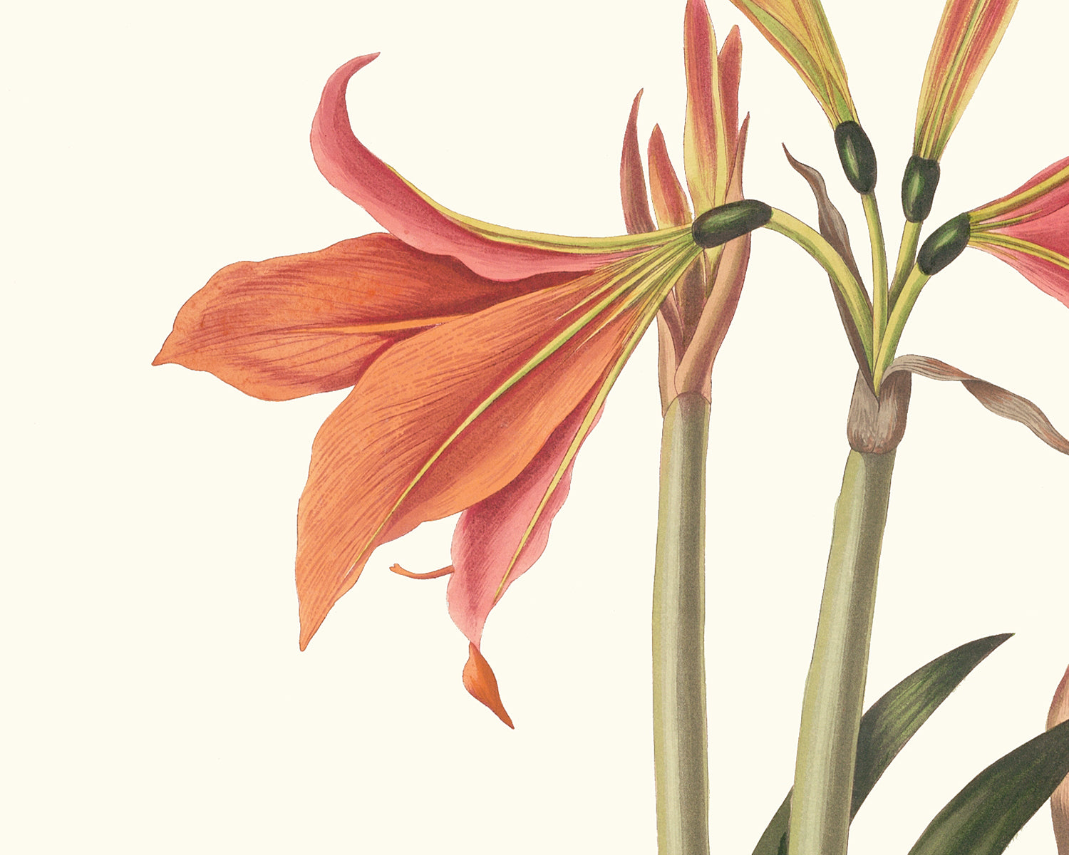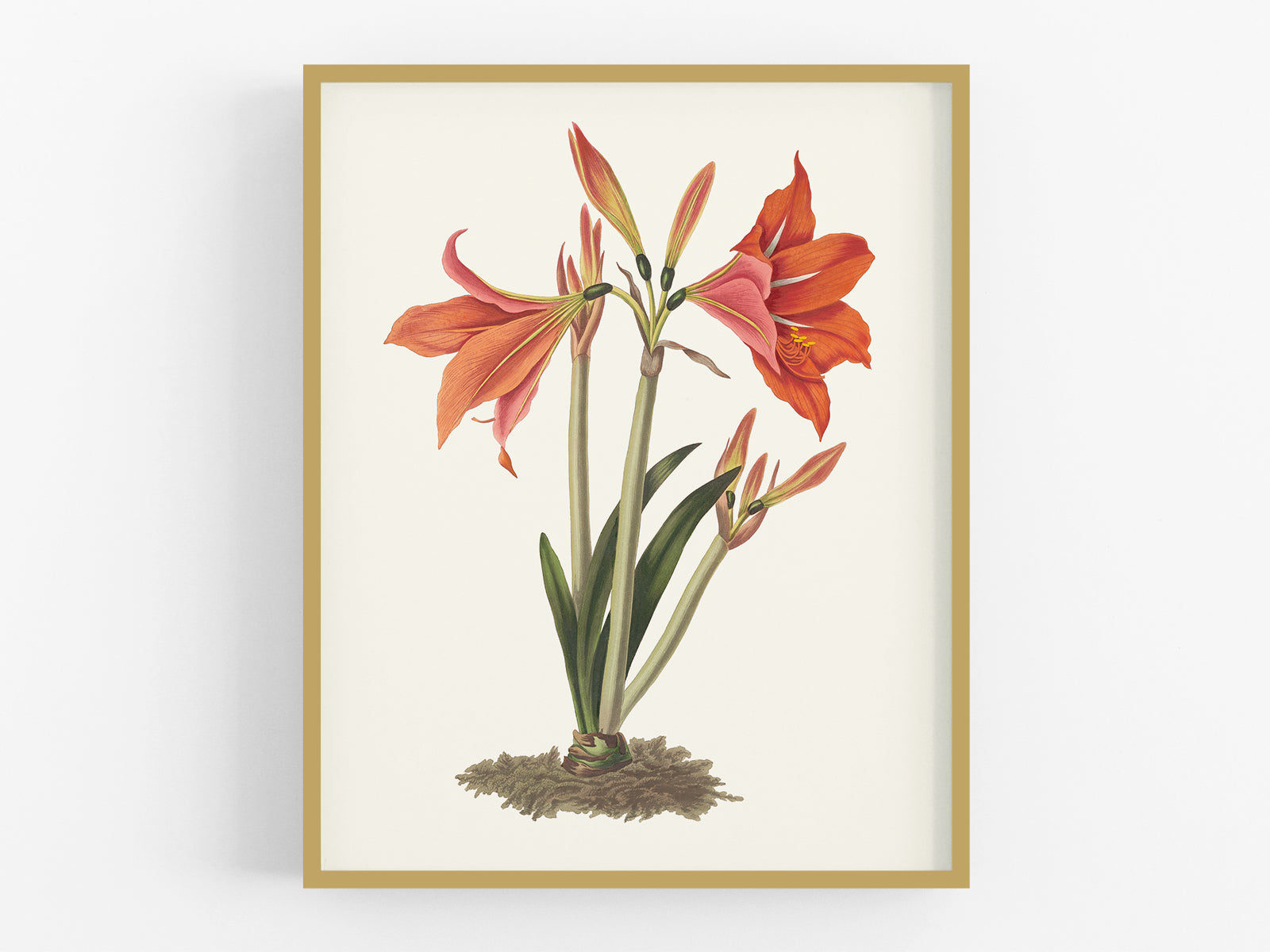 Orange amaryllis lily botanical flower art print #1: Amaryllis Reginaae (Mexican Lily), c. 1834