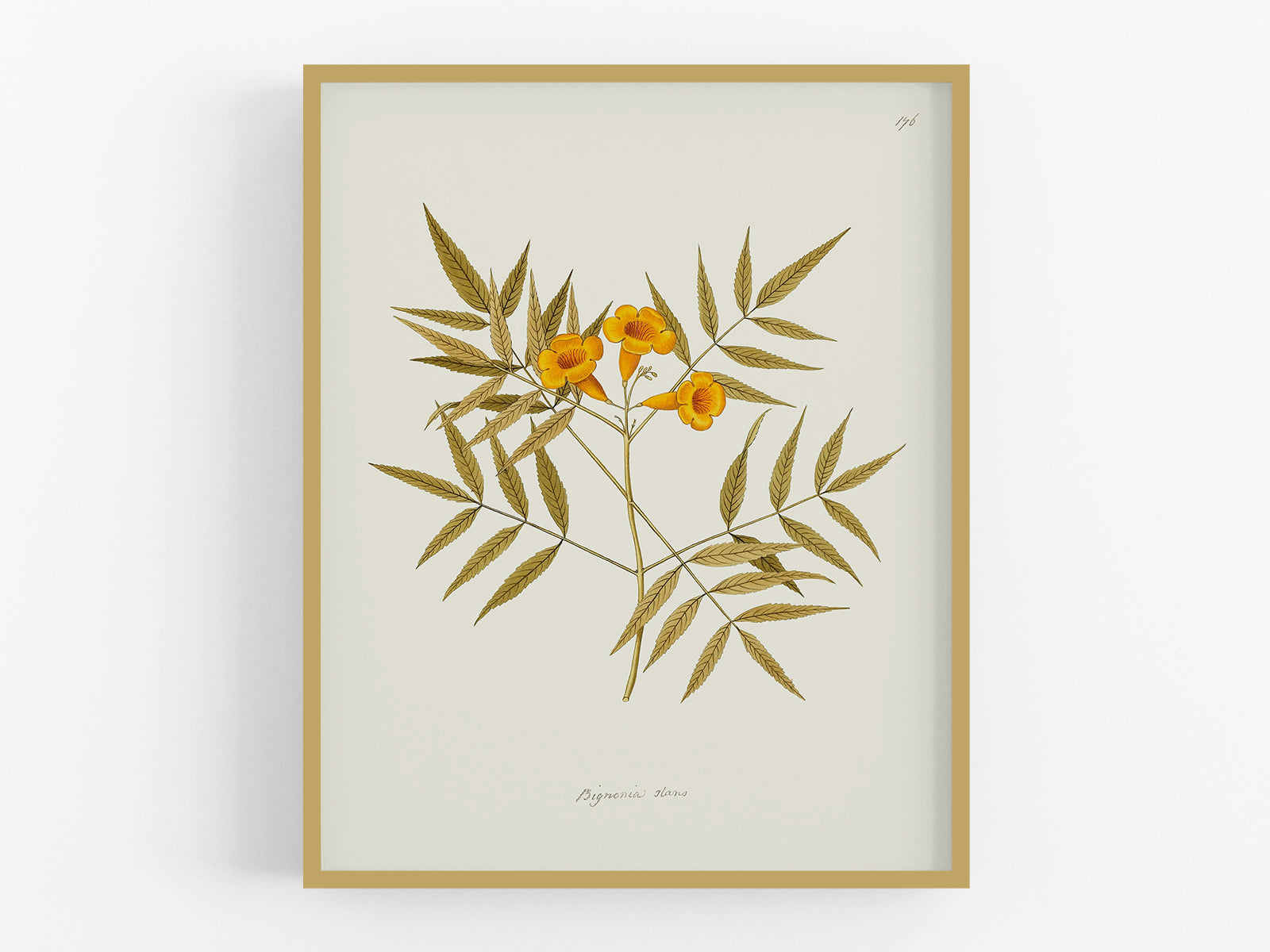 Orange Trumpet Flower Botanical Reproduction Art Print