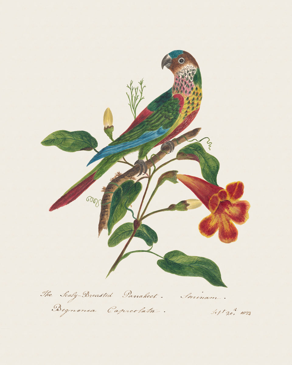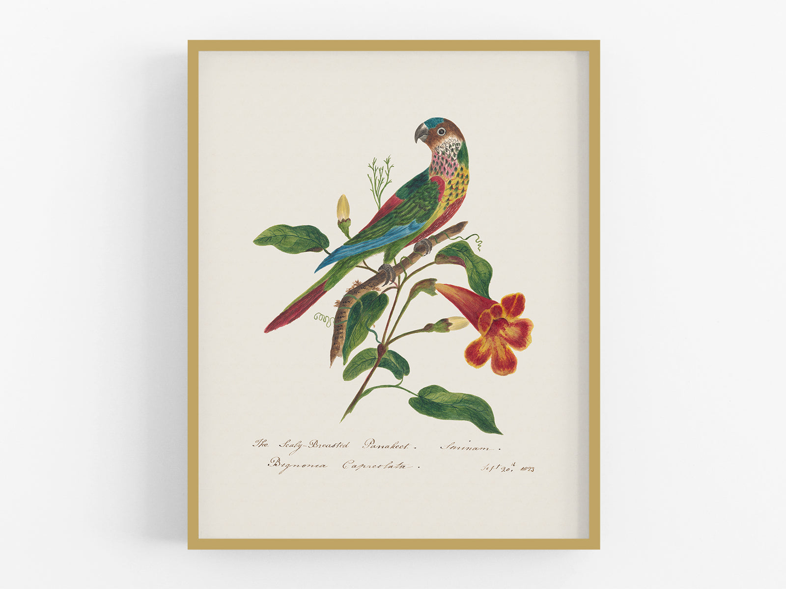 Scaly-breasted Parakeet, vintage reproduction art print, c. 1832.