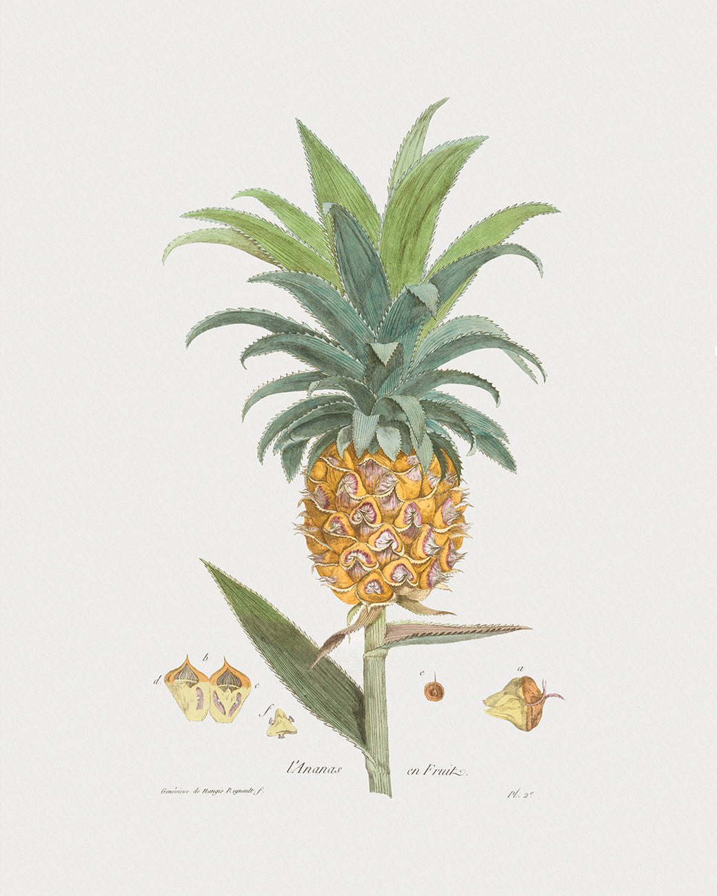 Pineapple and Crown Imperial vintage botanical reproduction art prints - set of two (2), c. 1774.