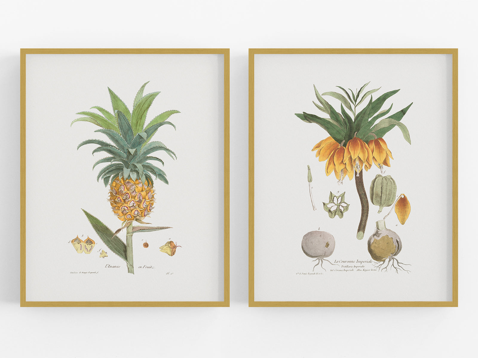 Pineapple and Crown Imperial Botanical Fruit and Flower Art Prints - Set of Two