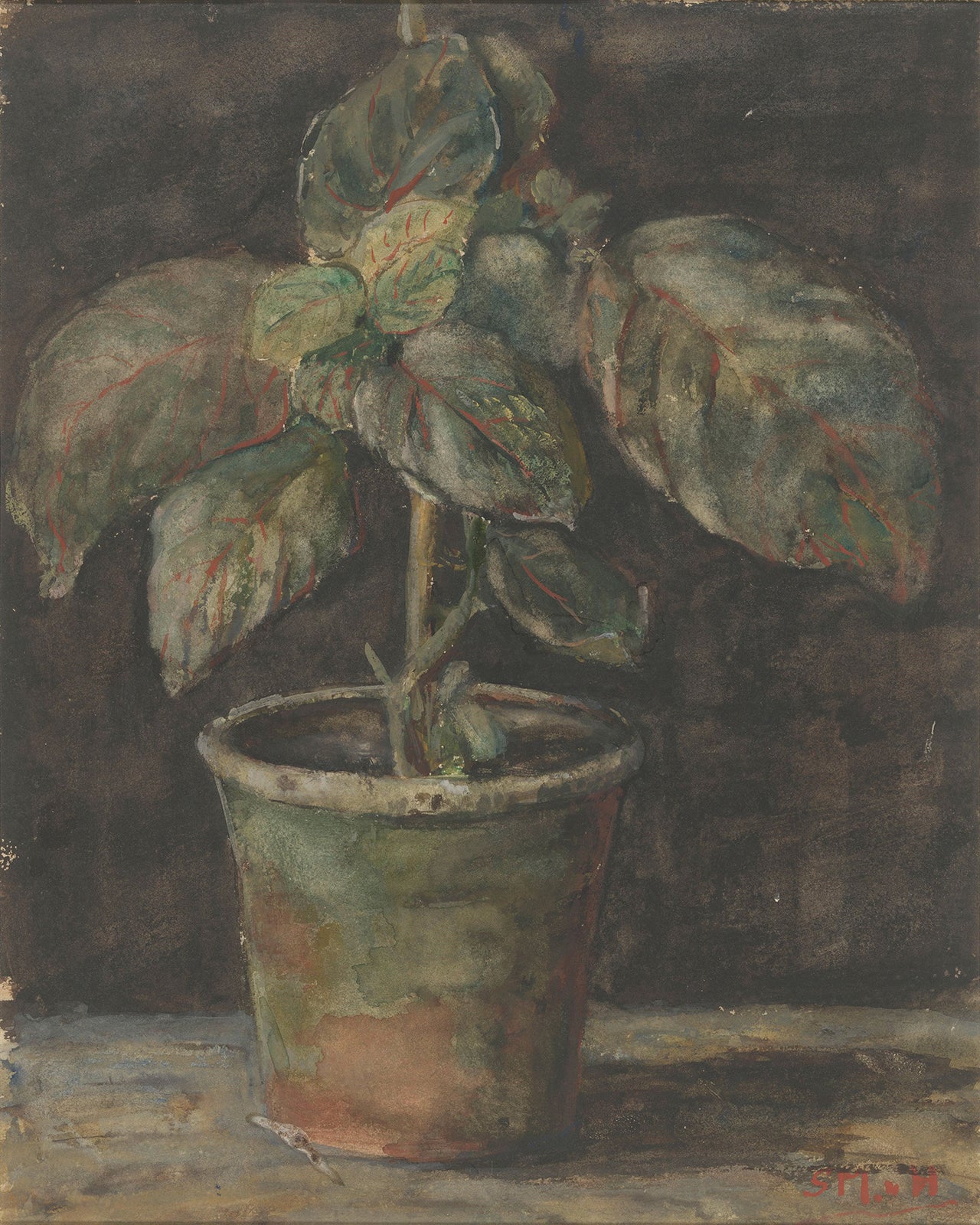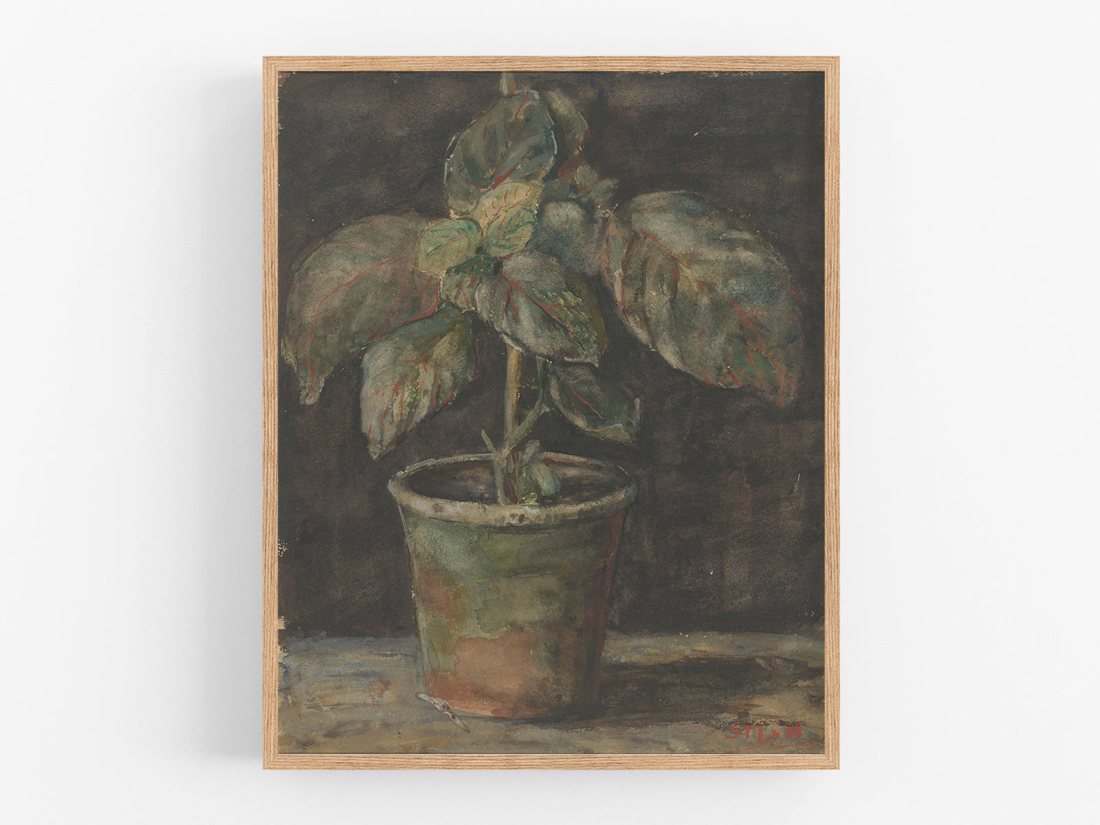 Potted plant watercolor art print, c. 1844-1909.