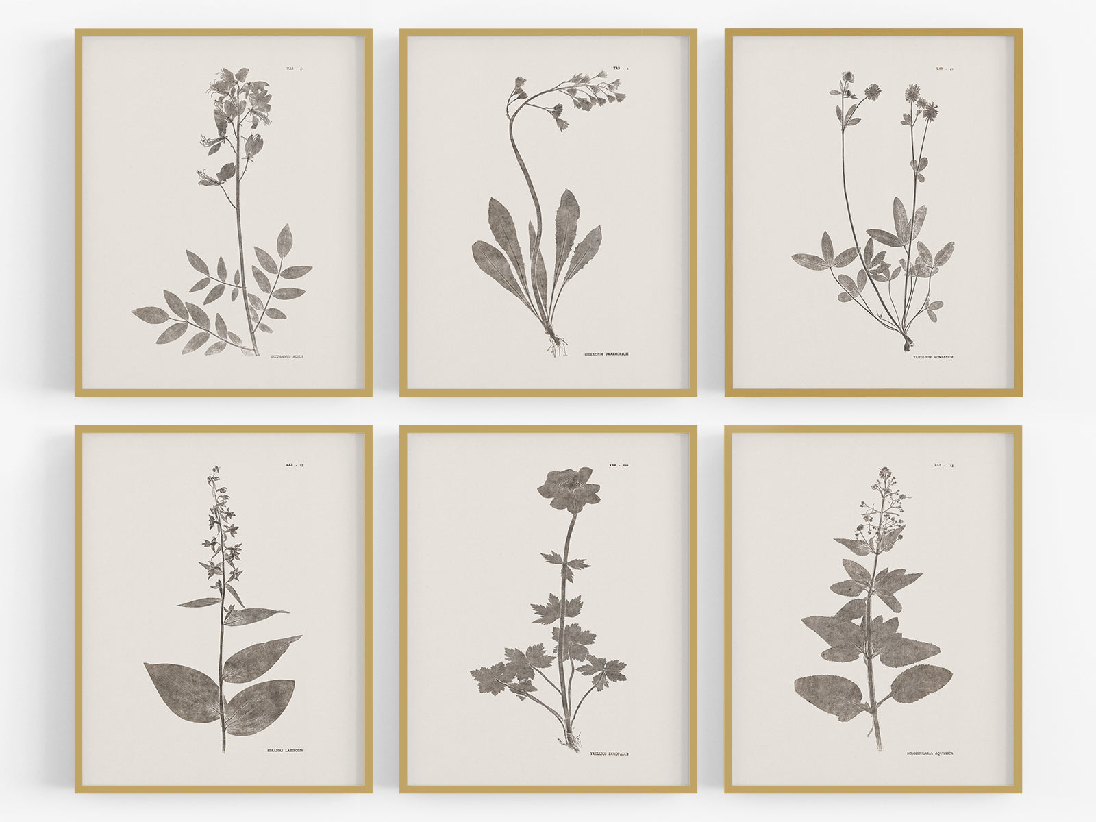 Flower & Leaf Rubbings, Botanical Art Prints - Set of Six