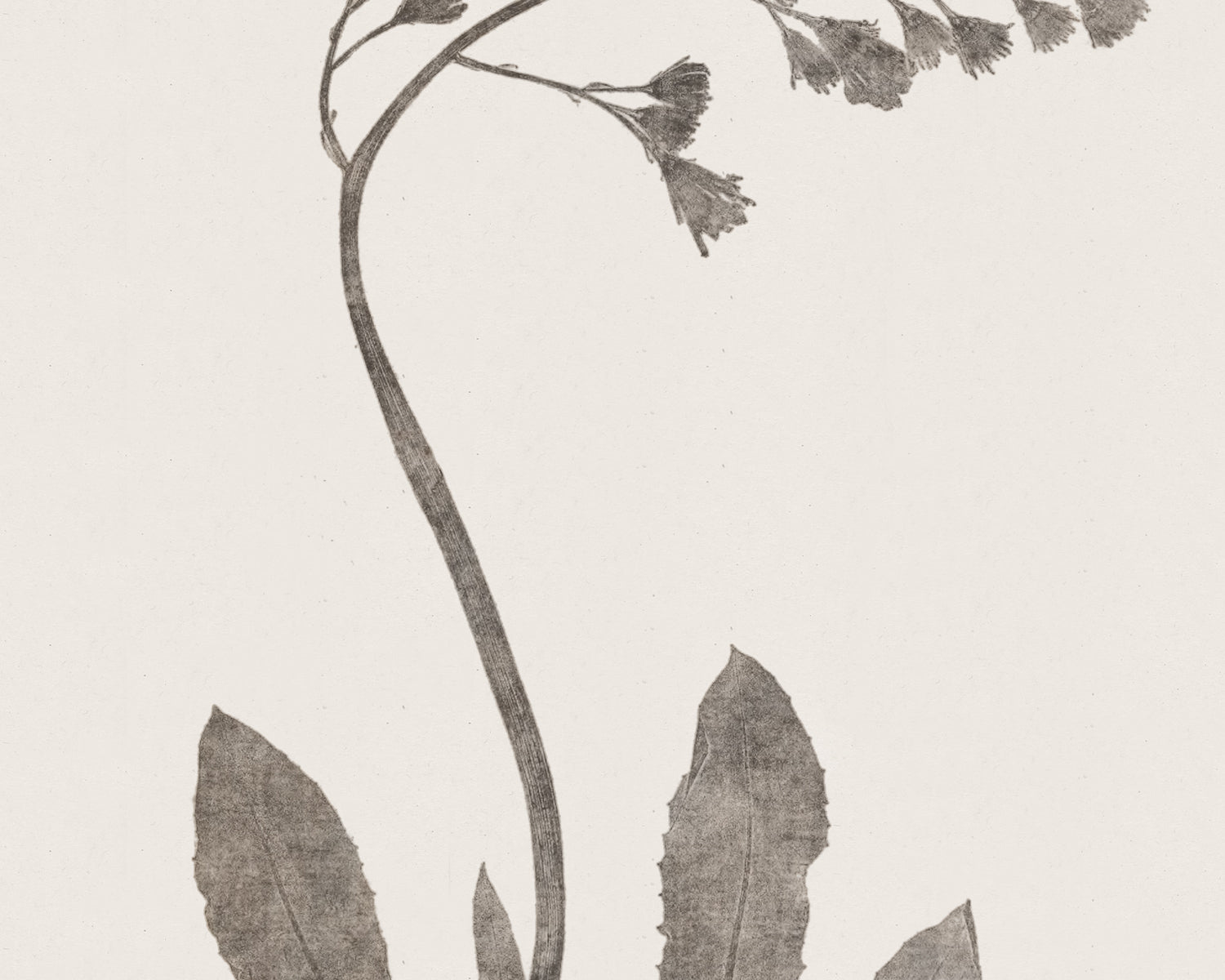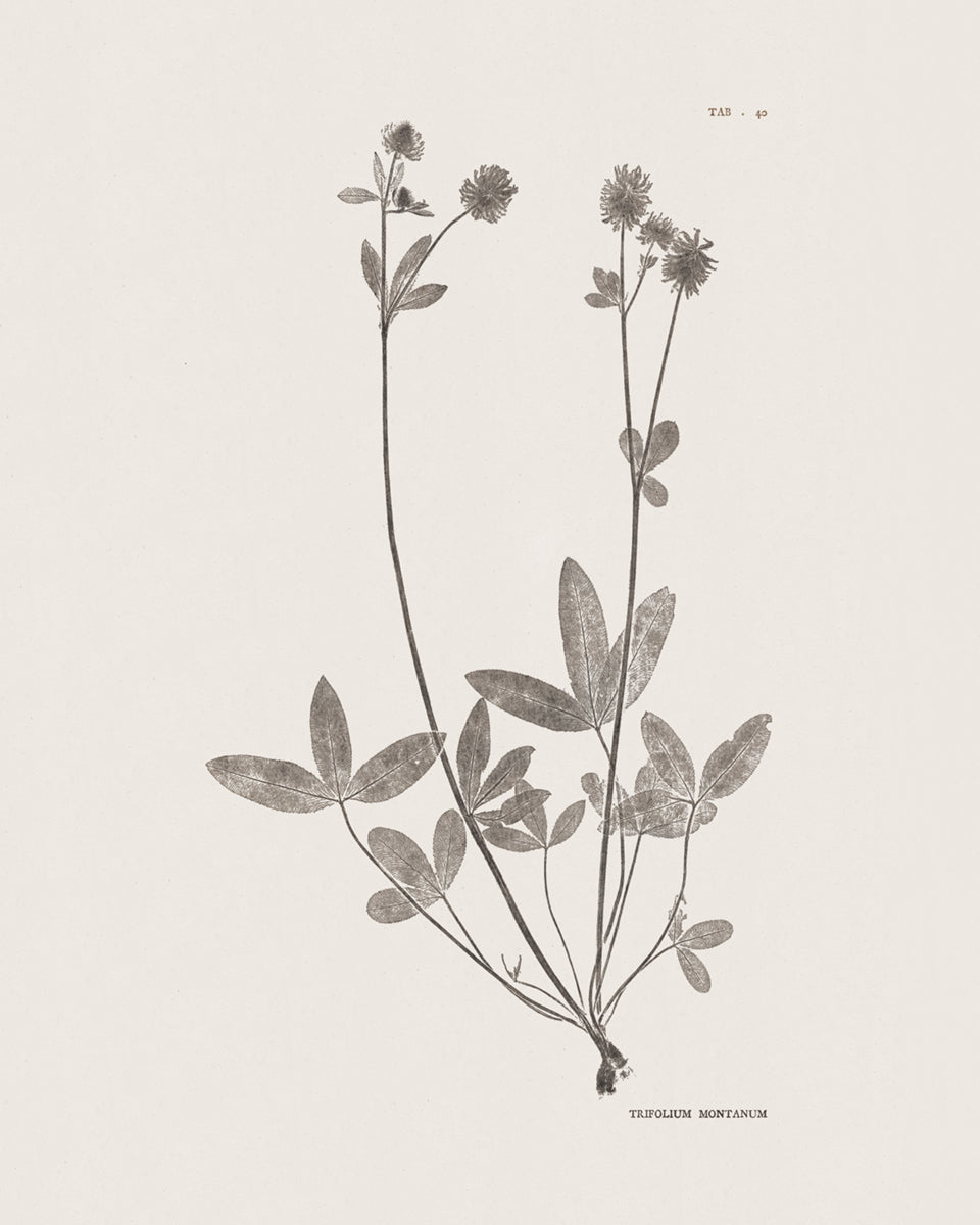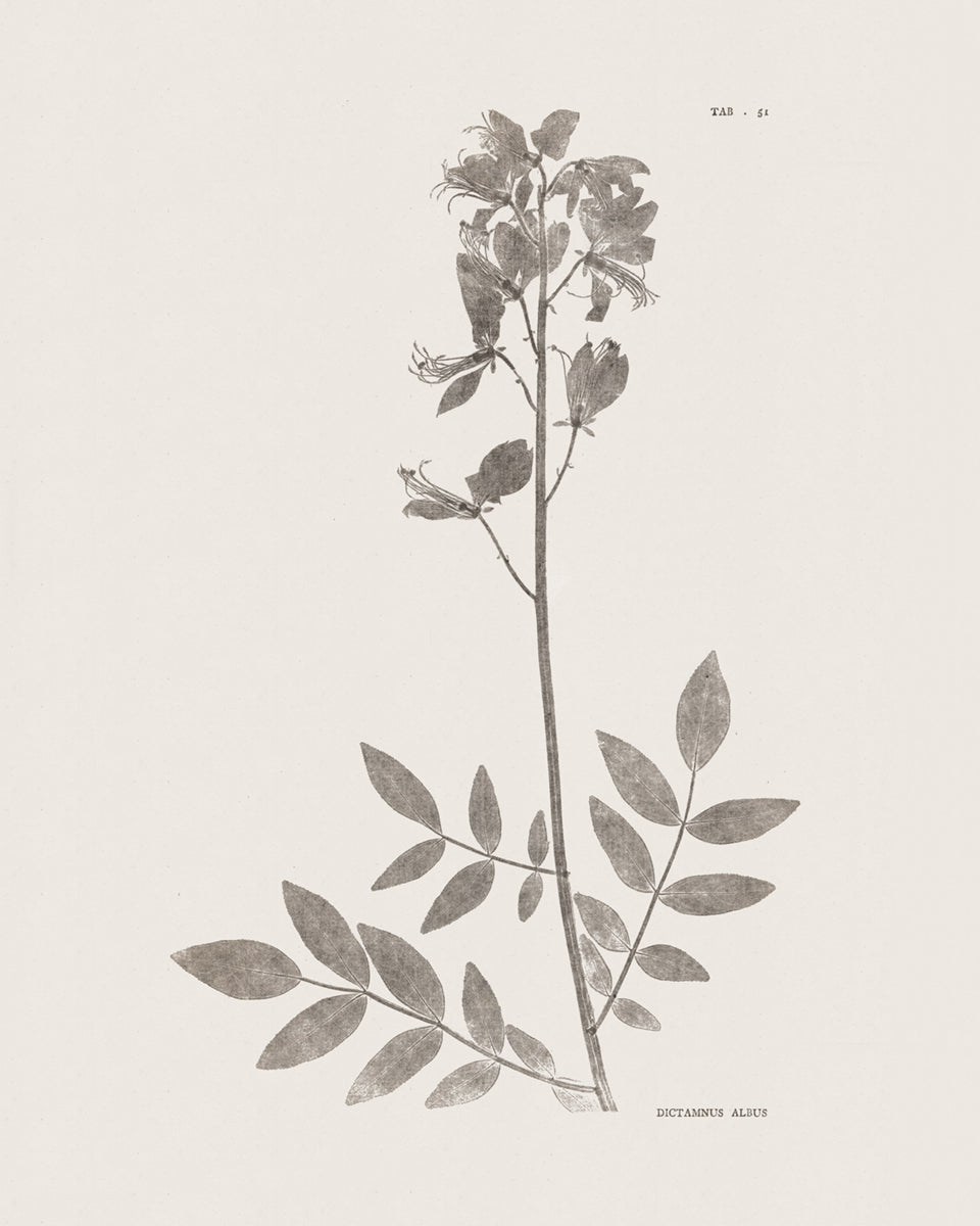 The original art was created using traditional leaf rubbings, a technique involving inking and pressing real flowers and leaves onto paper. Please note that this process was not a precise printing method and artwork will show the veins of the plants which will be slightly less crisp than other inking methods. These imperfections are part of the charm of these vintage rubbed prints.