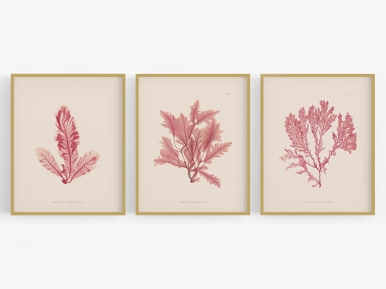 Pressed Seaweed Art Prints - Set of Three, c. 1859. Reproduction art prints of original nature printed pressed seaweed.