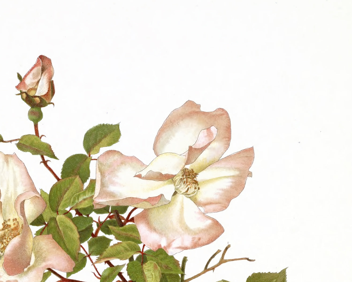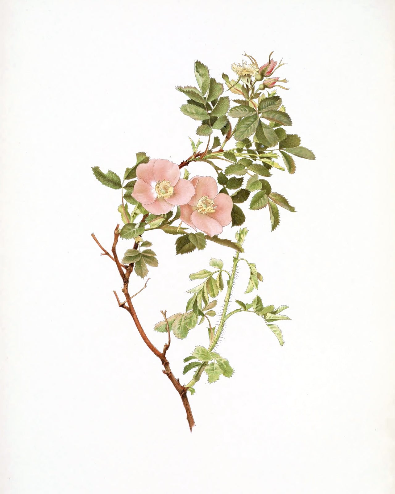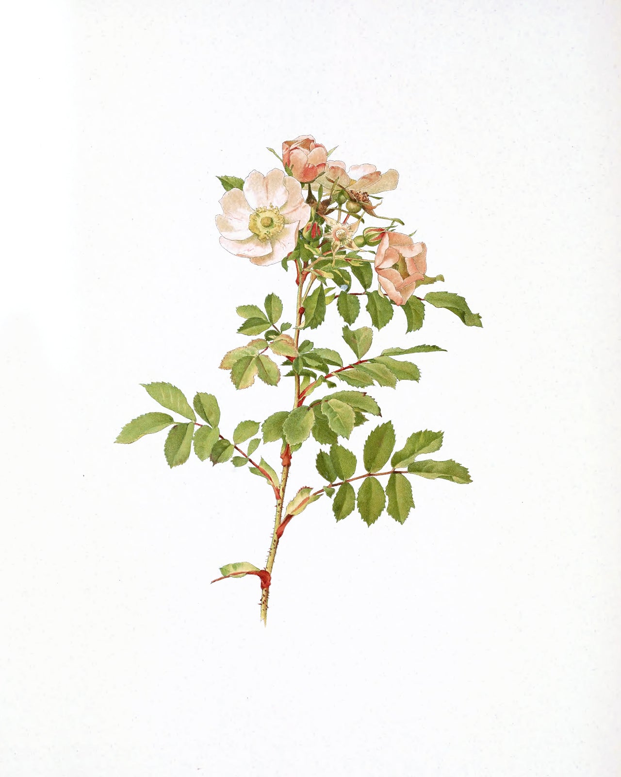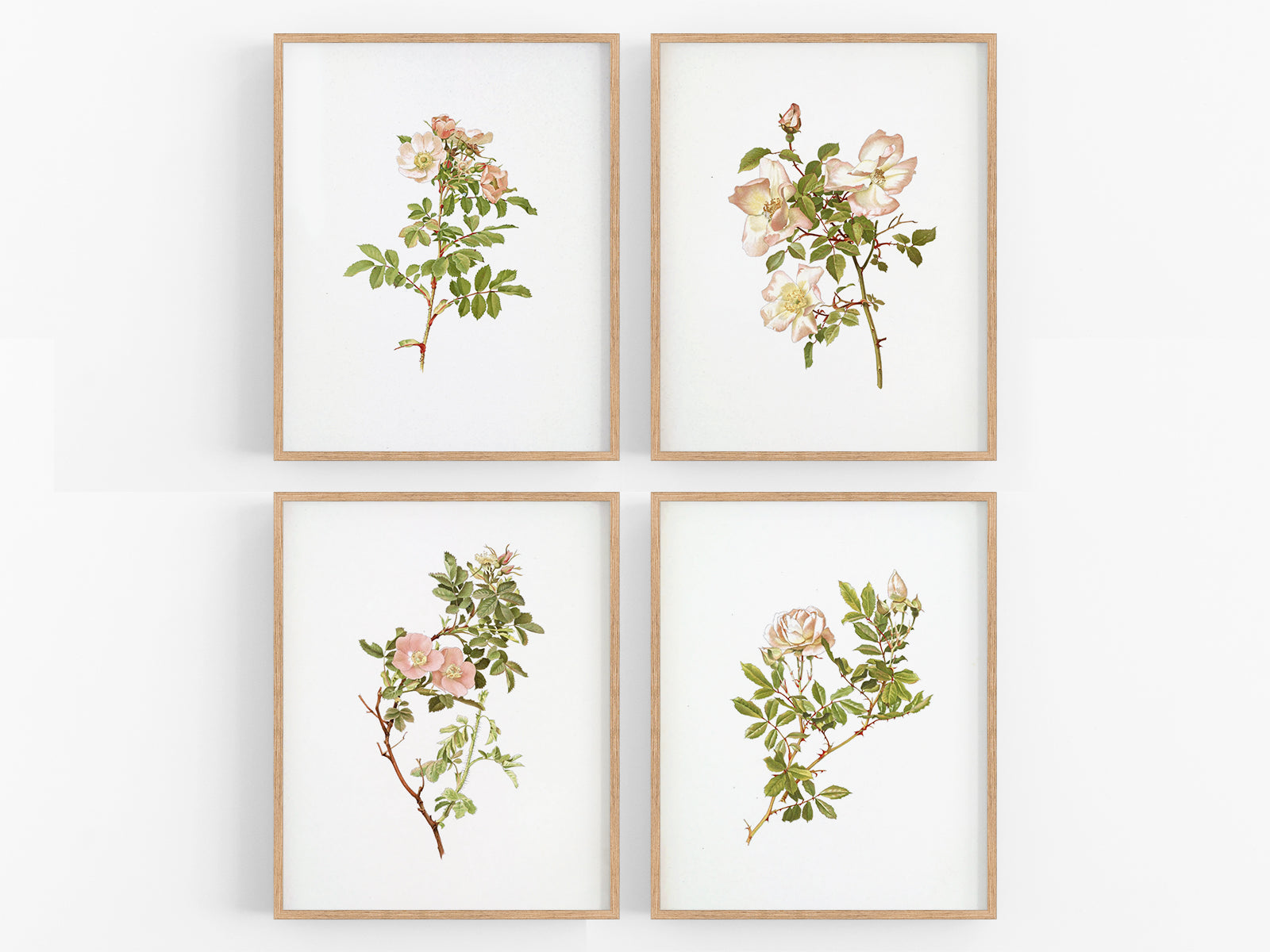 Peach Rose Flower Botanical Art Prints - Set of Four