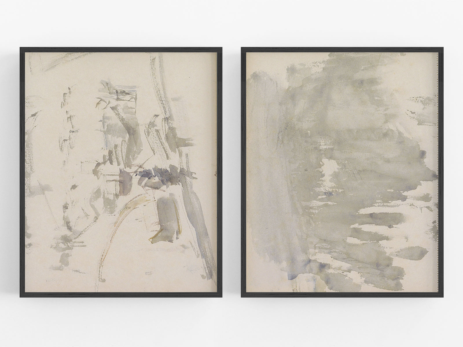 Set of two (2) abstract watercolor, vintage reproduction art prints, c. 1875-1934.