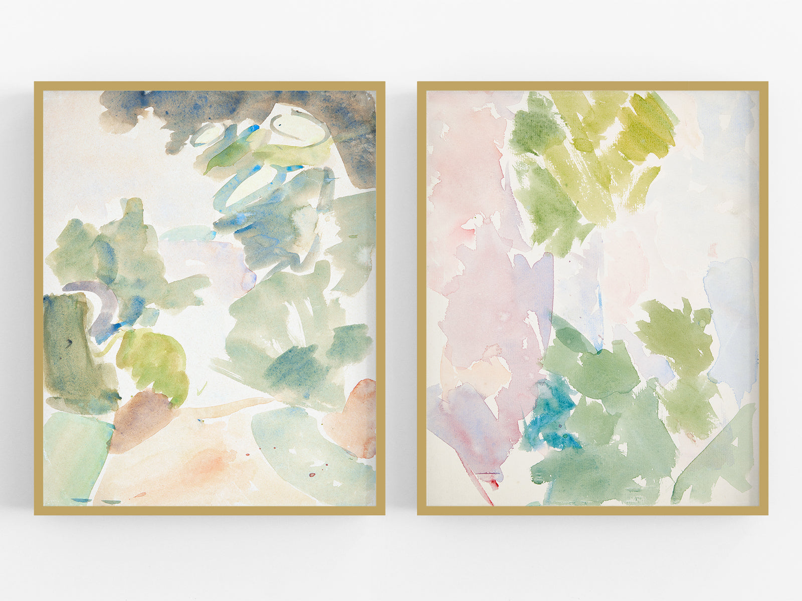 Abstract Pastel Watercolor Art Prints - Set of Two