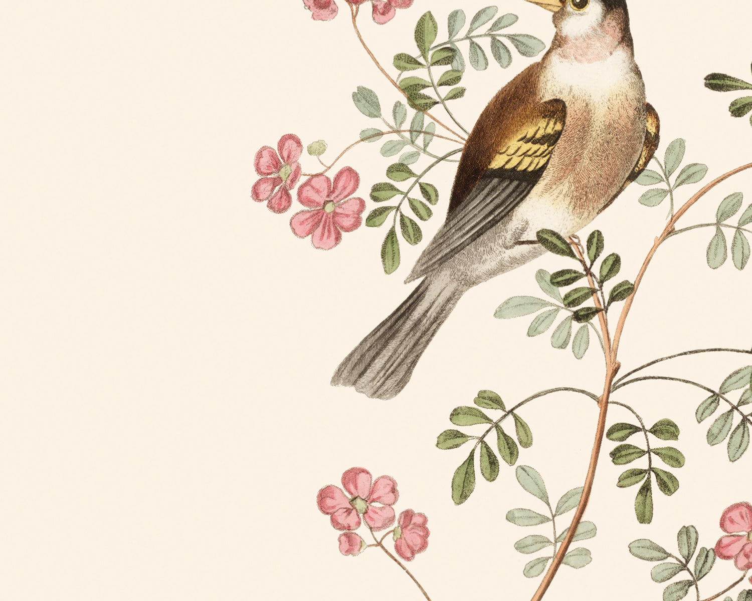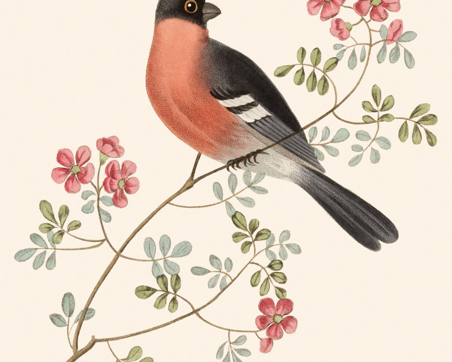 Set of Two (2) vintage reproduction art prints: Bullfinch & Goldfinch, c. 1817.