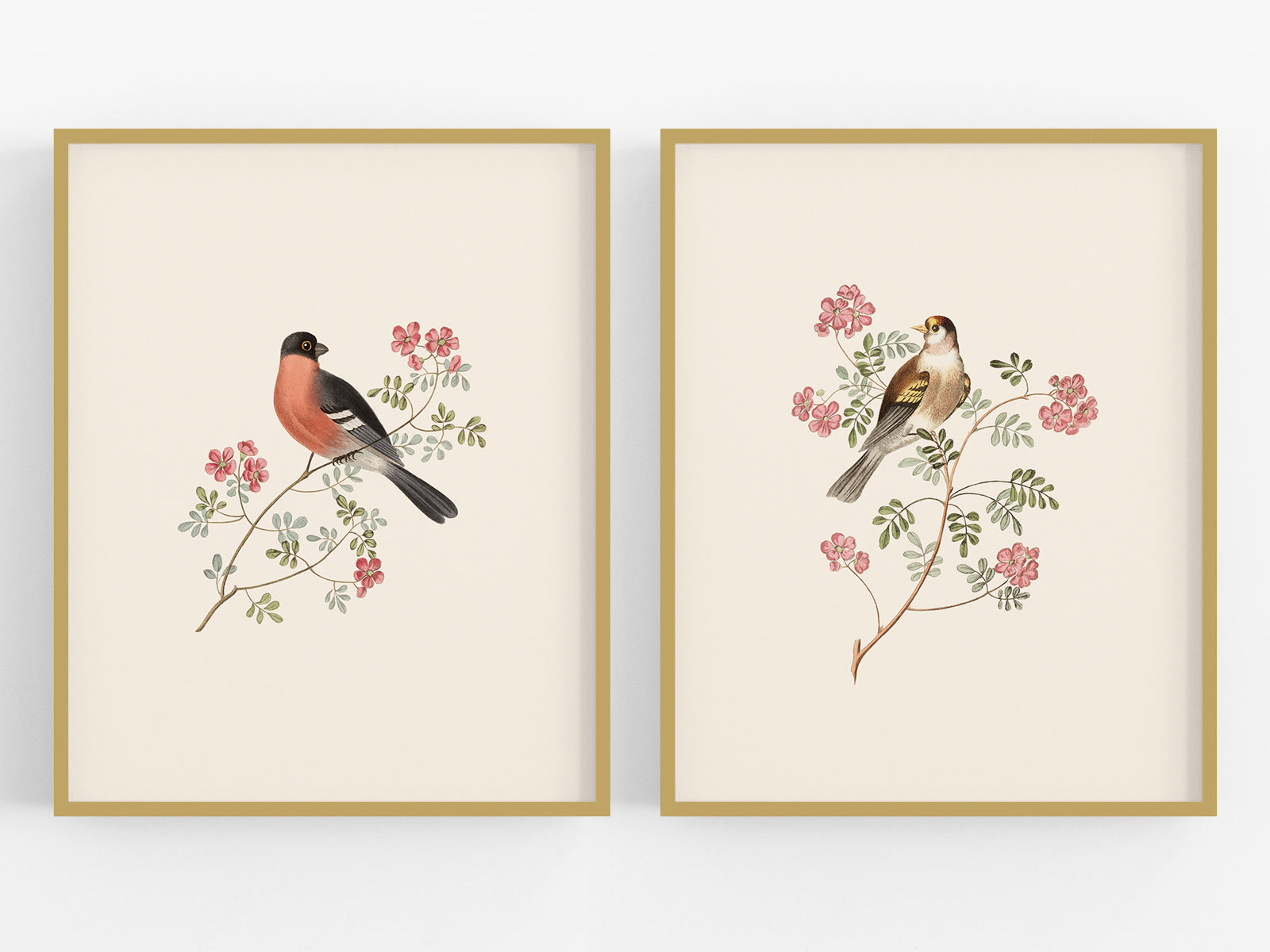 Finch Art Prints: Bullfinch & Goldfinch - Set of Two