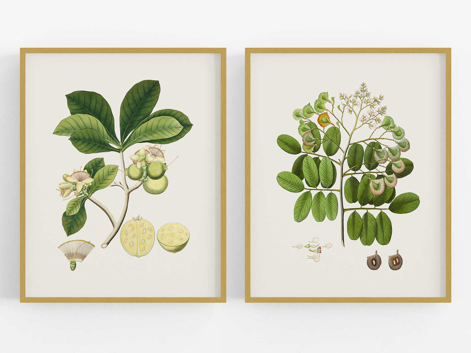 East India Company Botanical Flowering Tree Branch Art Prints - Set of Two