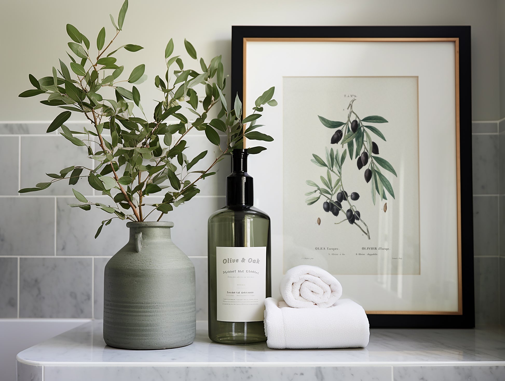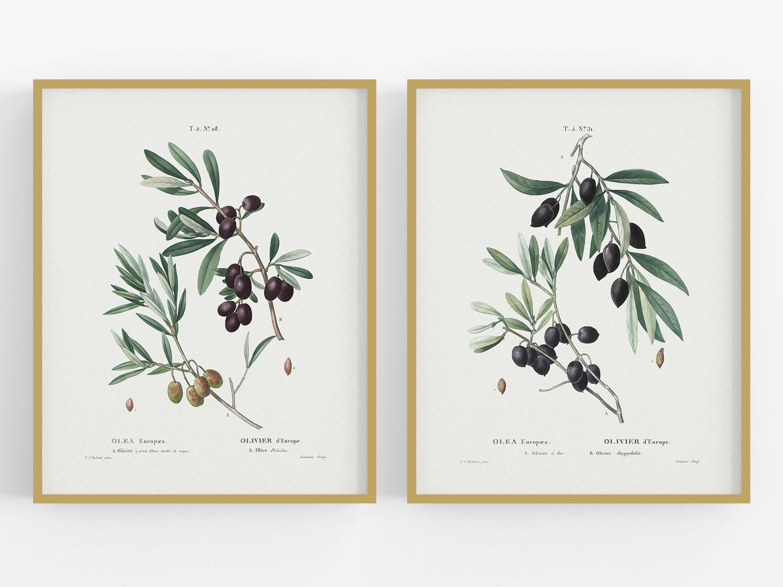 Set of two (2) botanical olive branch reproduction art prints by Pierre Joseph Redouté: c. 1801-1819.