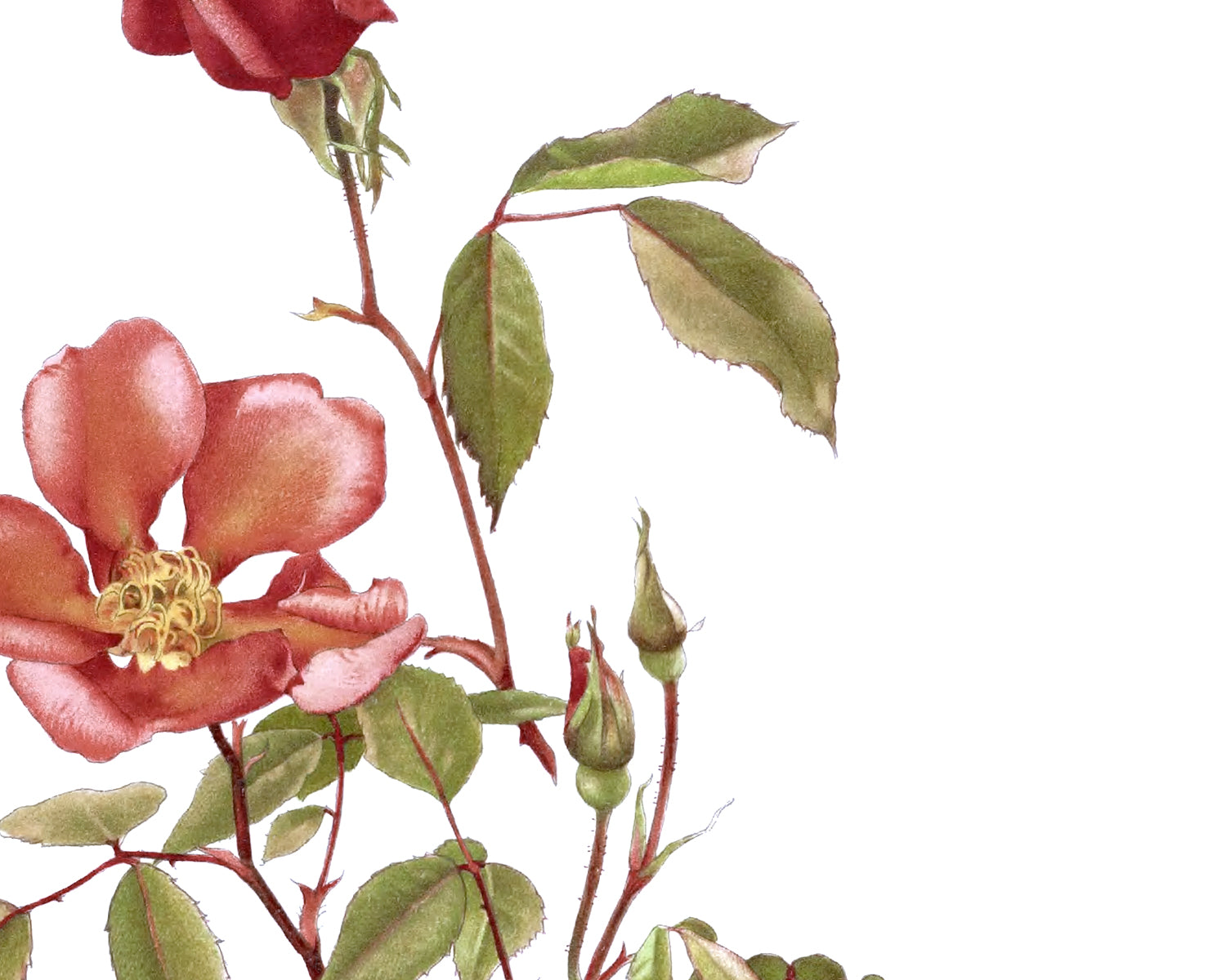 Red Rose Flower Botanical Art Prints - Set of Two