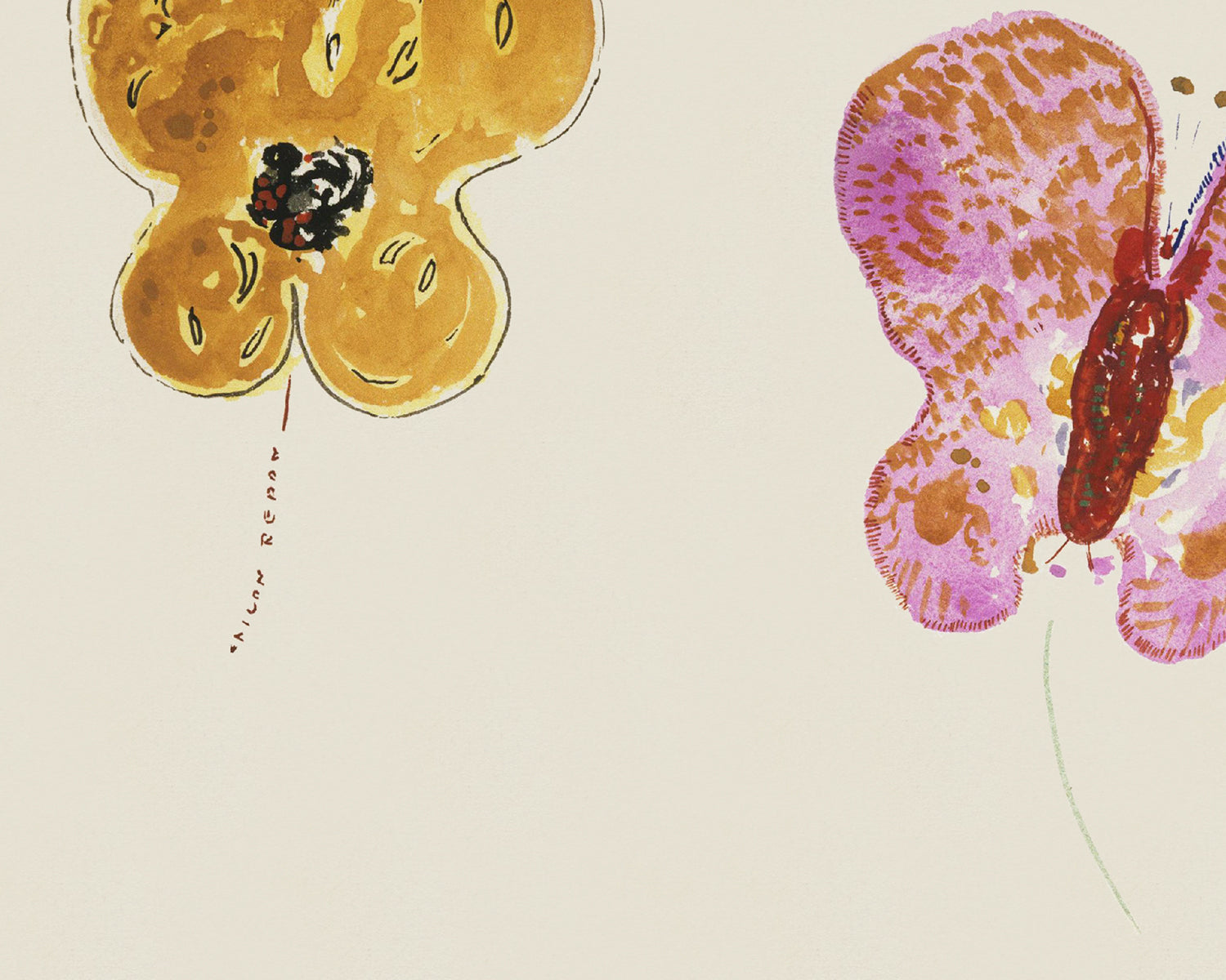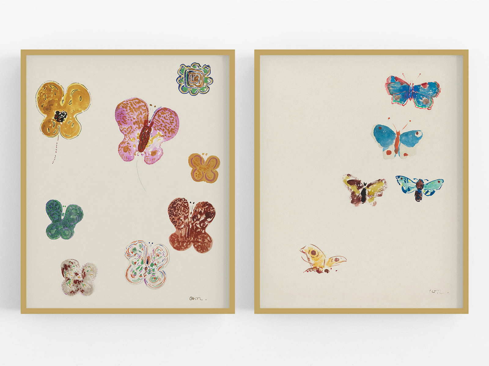 Set of two watercolor butterfly vintage reproduction art prints, c. 1910-1914.